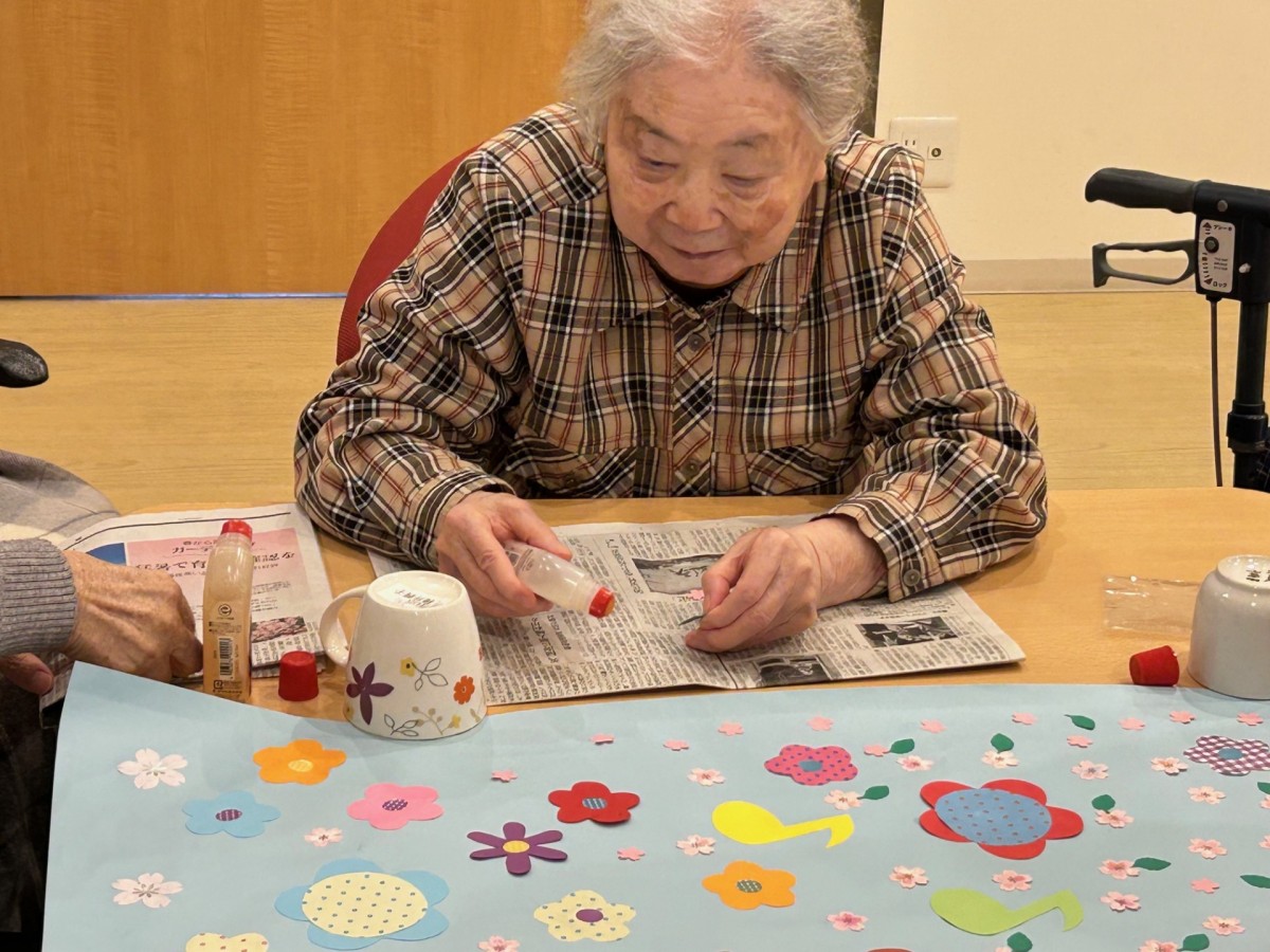 作っている間もおしゃべりが止まらず、とっても楽しそうなご様子!職員も「いいですね~」「その色かわいい!」と一緒に盛り上がりながらお手伝いしました。