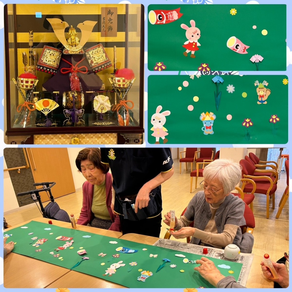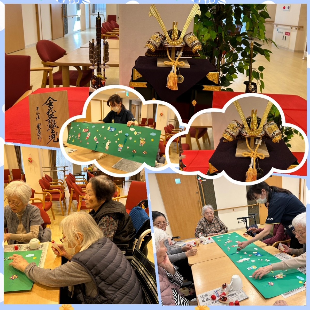 アミカの郷ちとせでは、端午の節句に向けた準備が始まりました。館内には立派な五月人形を飾り、その凛々しく勇ましい姿がひときわ存在感を放っています。季節感あふれる飾りに、利用者さまからは「もうすぐ五月ね」「早いわね」といった声も聞かれ、行事を心待ちにする雰囲気に包まれています。ご家族さまにも喜んでいただき、皆さまに見守られながら、五月人形もどこか誇らしげな表情をしています。