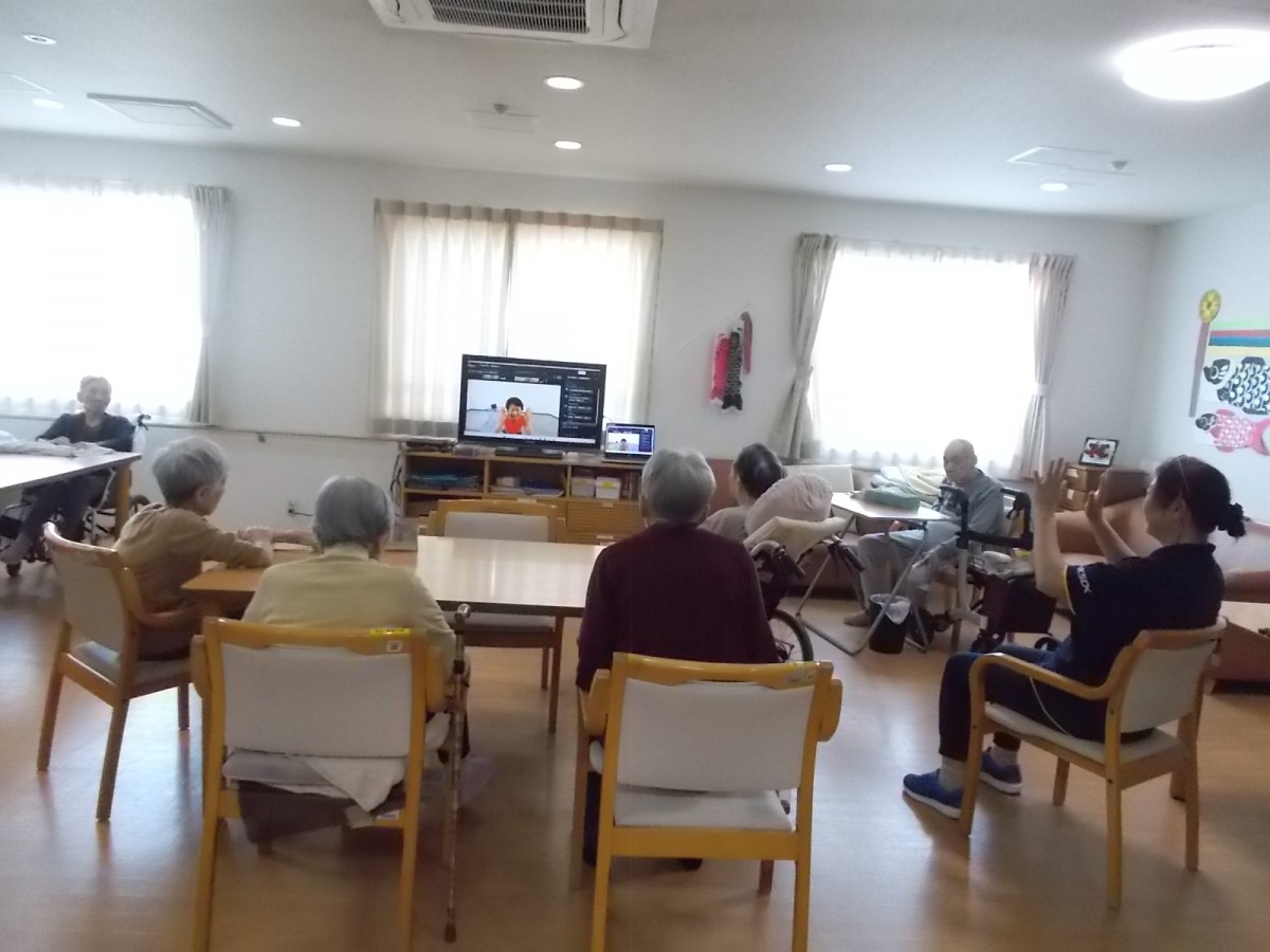 リモート体操では、しっかりとリズムに乗って手足を動かしてもらいます。一緒に身体を動かすスタッフにとっても