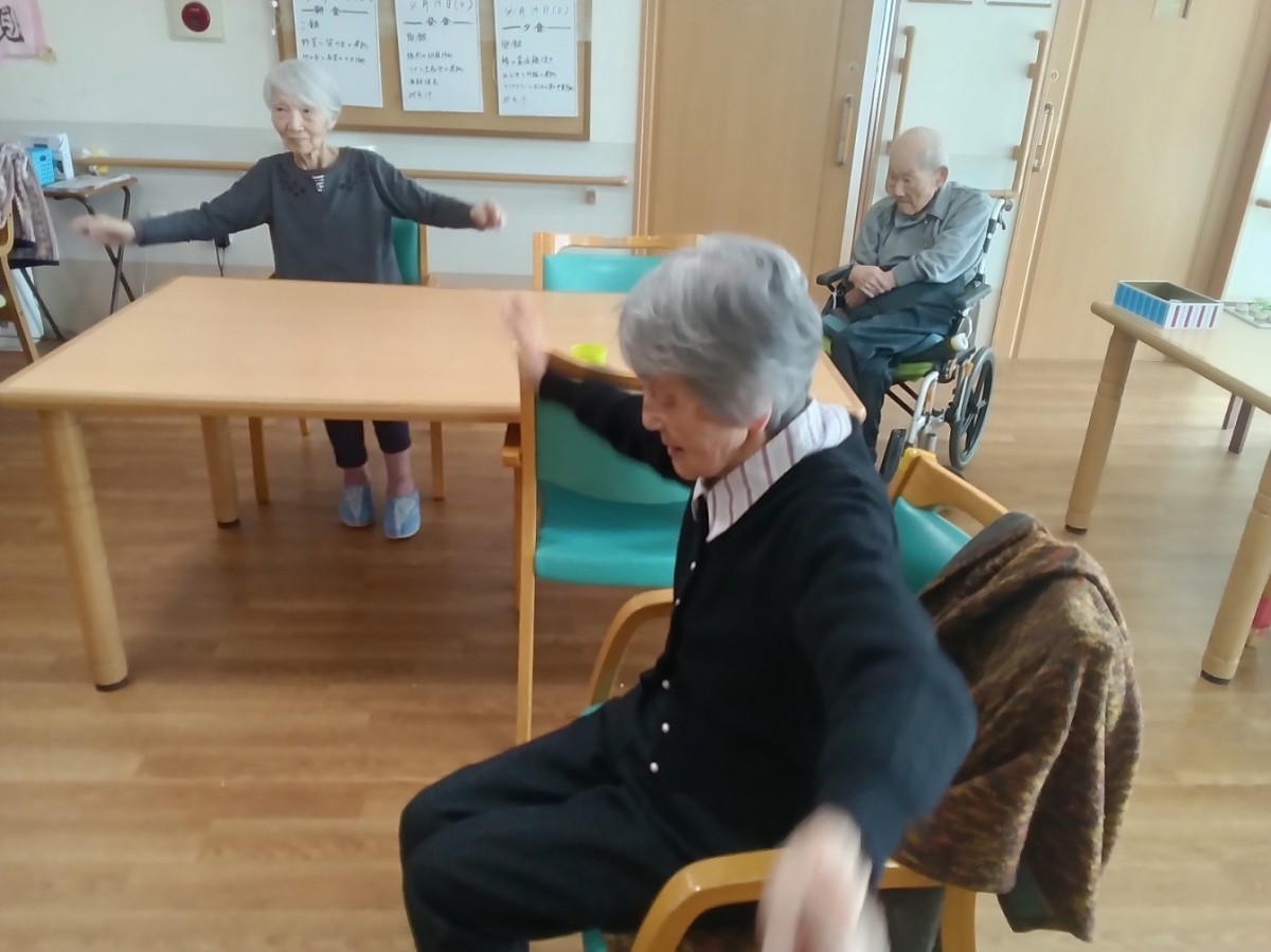 こんにちは GHみんなの家川崎新百合ヶ丘です 先日1Fの職員とご利用者様で体操した時の様子です