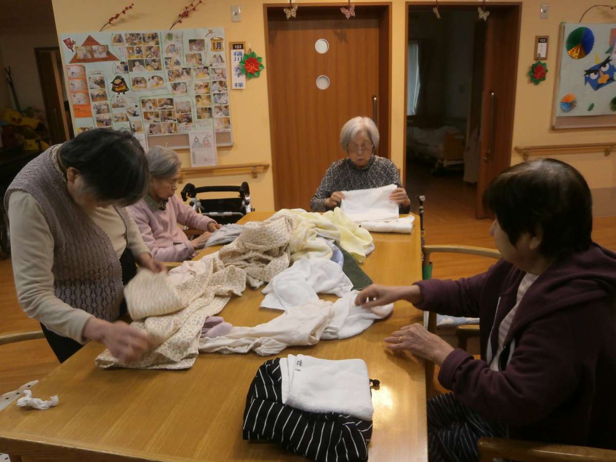 フロアでは取り込んだ洗濯物をたたみにかかっております!ありがたや~~~!