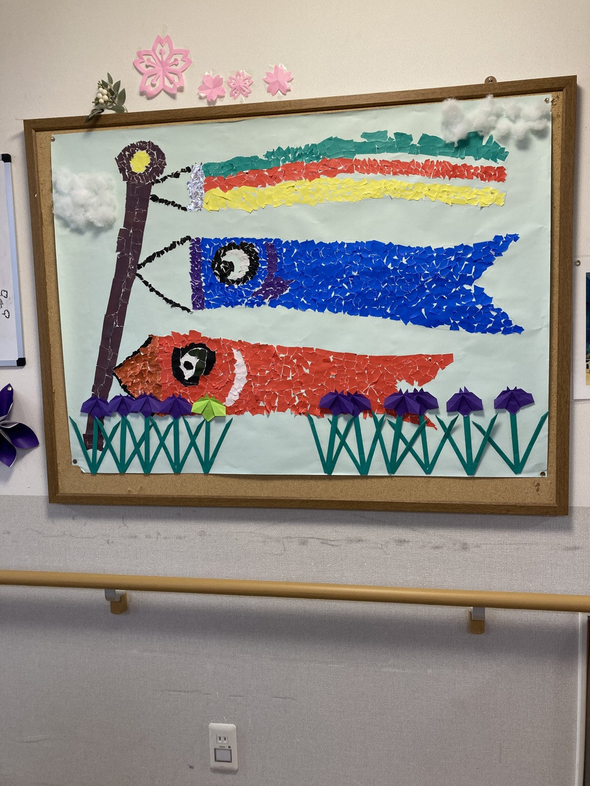折り紙で折ったあやめを貼りいきました。