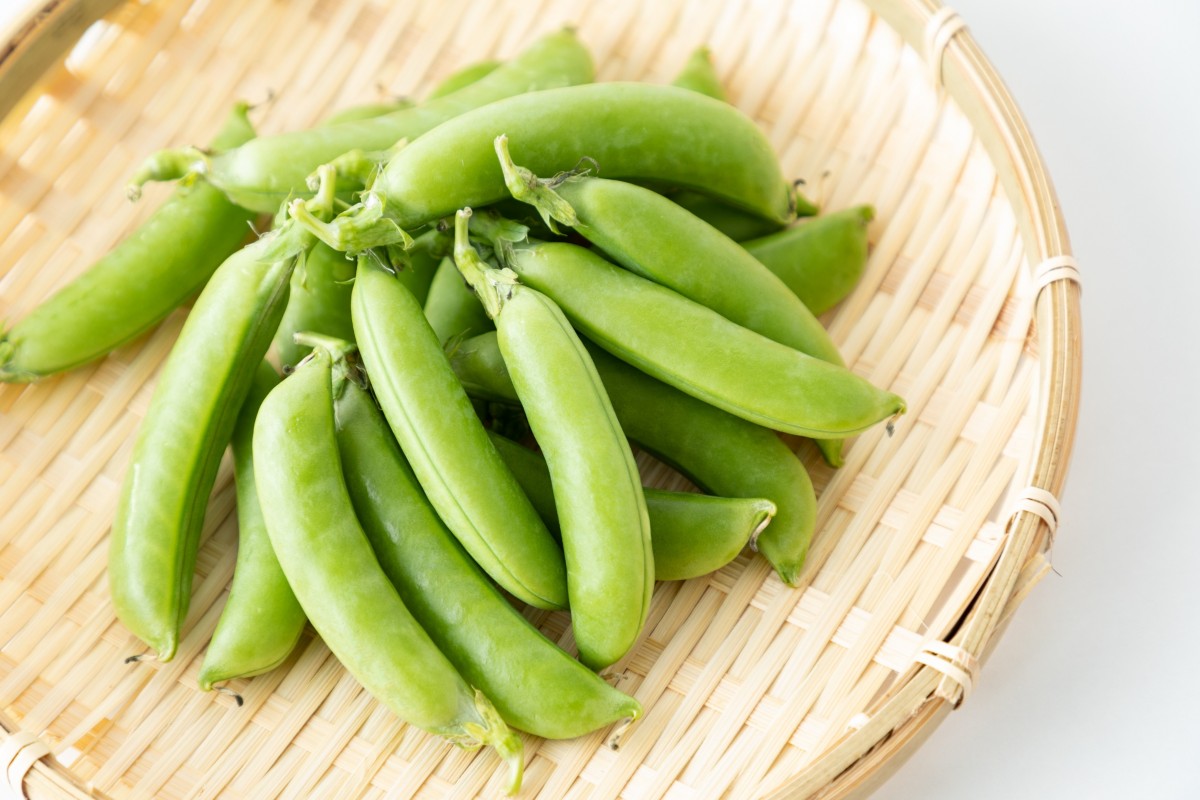 『スナップエンドウ』はさやえんどうとグリーンピースのハイブリッドで、みずみずしく、甘い鞘(さや)とやわらかい豆の両方を食べられる野菜です。