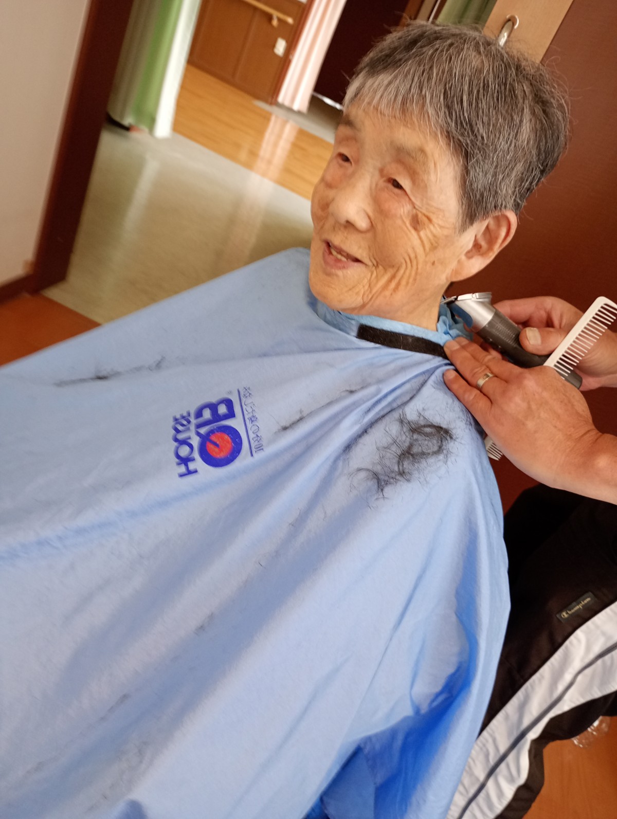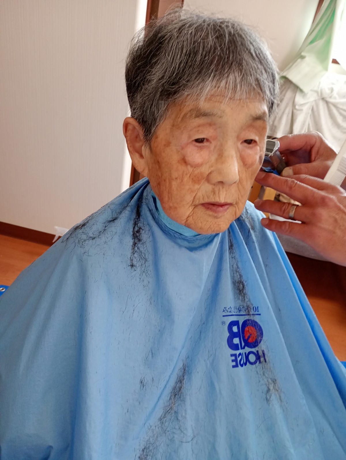 なんと利用者様の息子さんが美容師さんでいらっしゃるのでカットをしに来てくださいました。