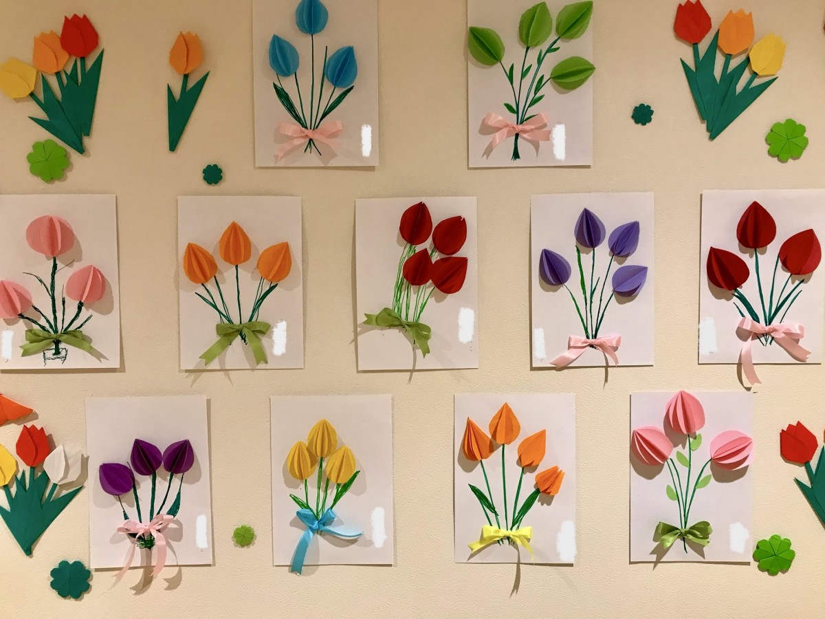 色とりどりの可愛らしいチューリップが完成しました(๑>◡<๑)♡
