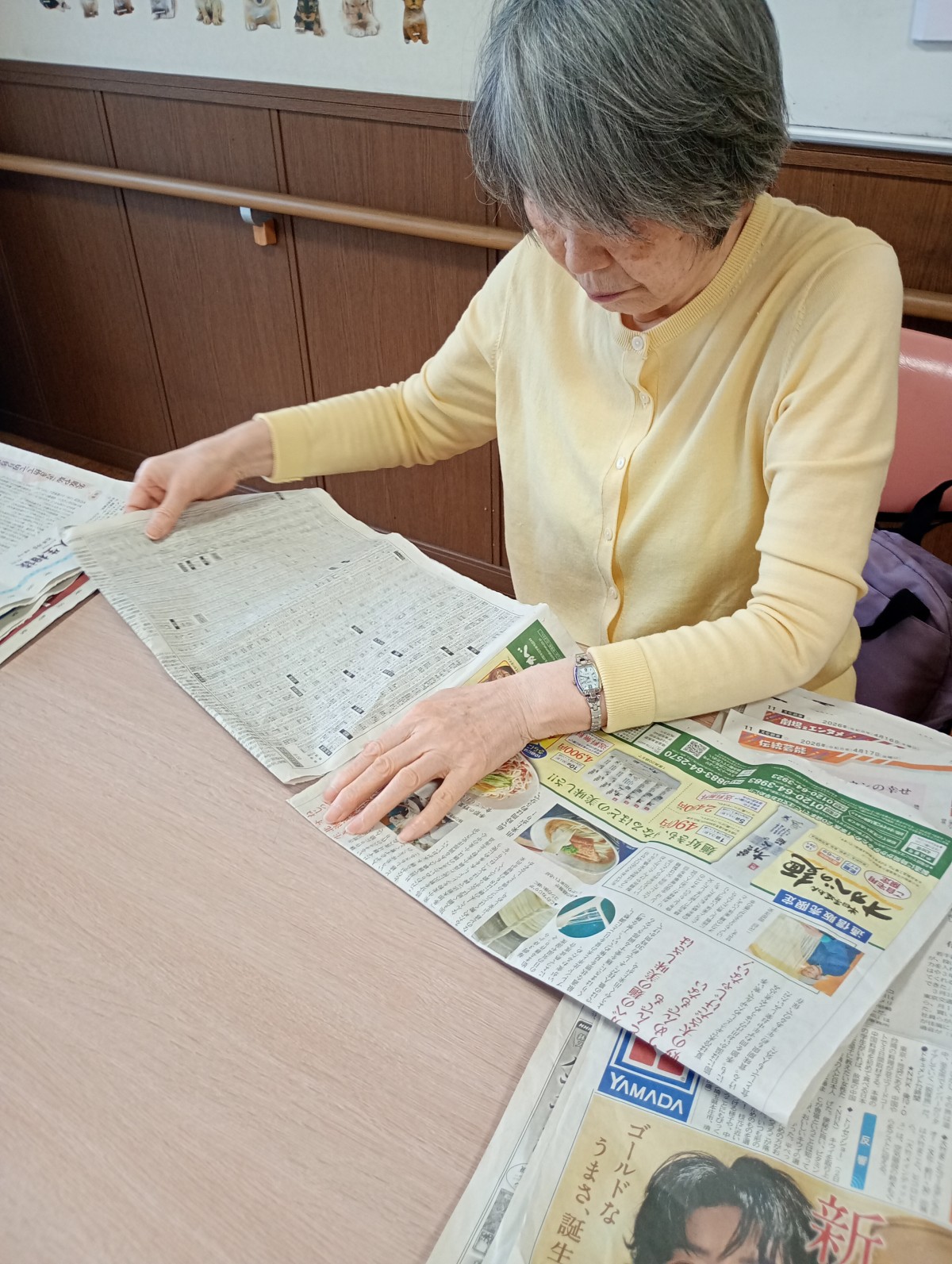 古新聞を使いやすい大きさにカットしてくださるT様。