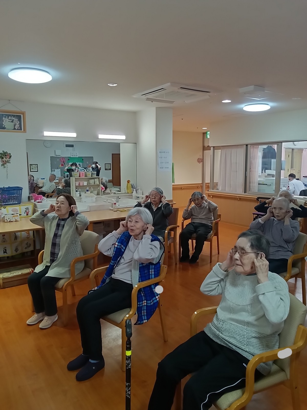 手足を動かしながら深呼吸を取り入れたプログラムで、みなさん真剣な表情で取り組んでいらっしゃいました。