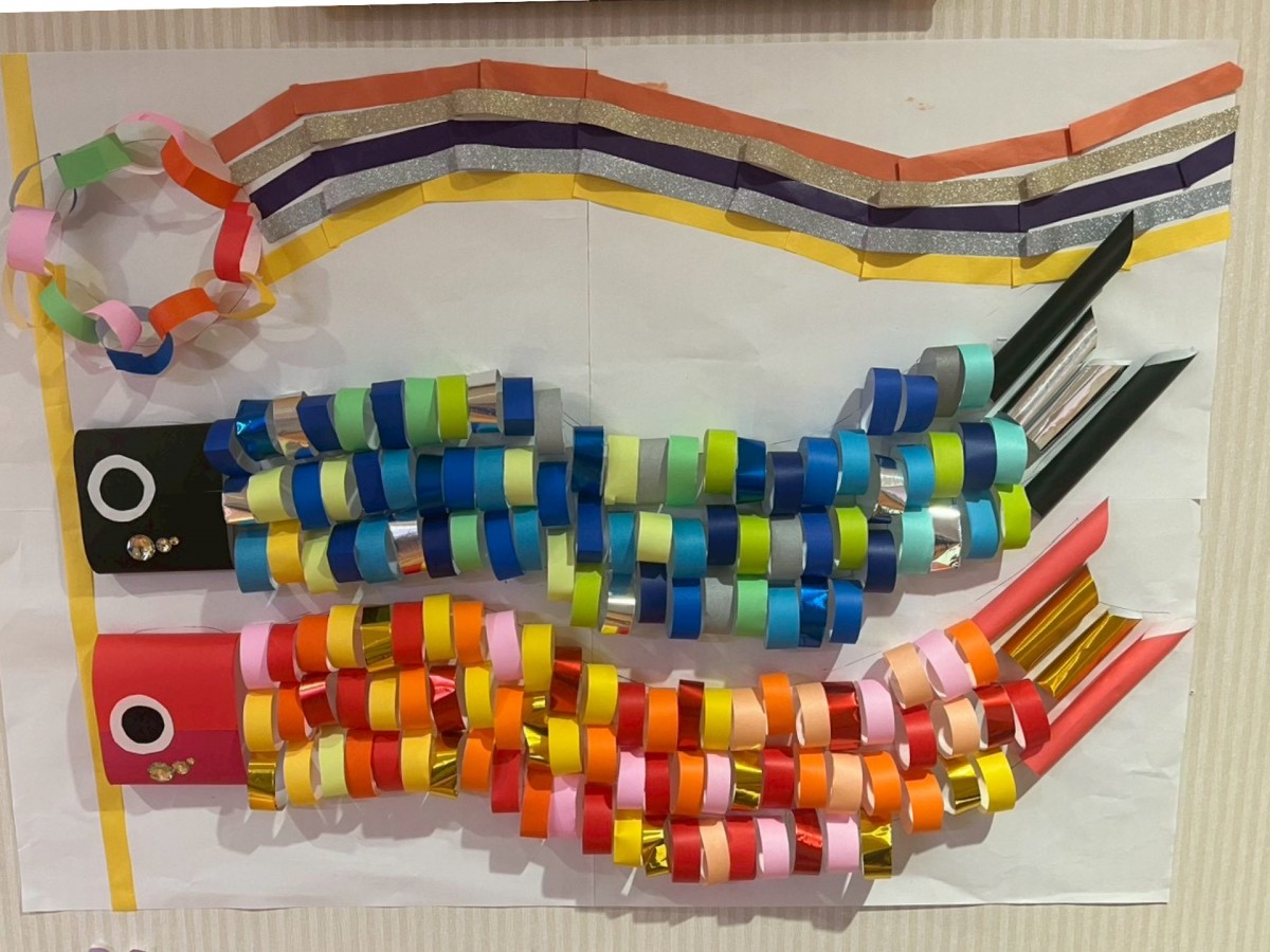 来月 端午の節句に向け、工作レクとして鯉のぼりを制作しました(^^)