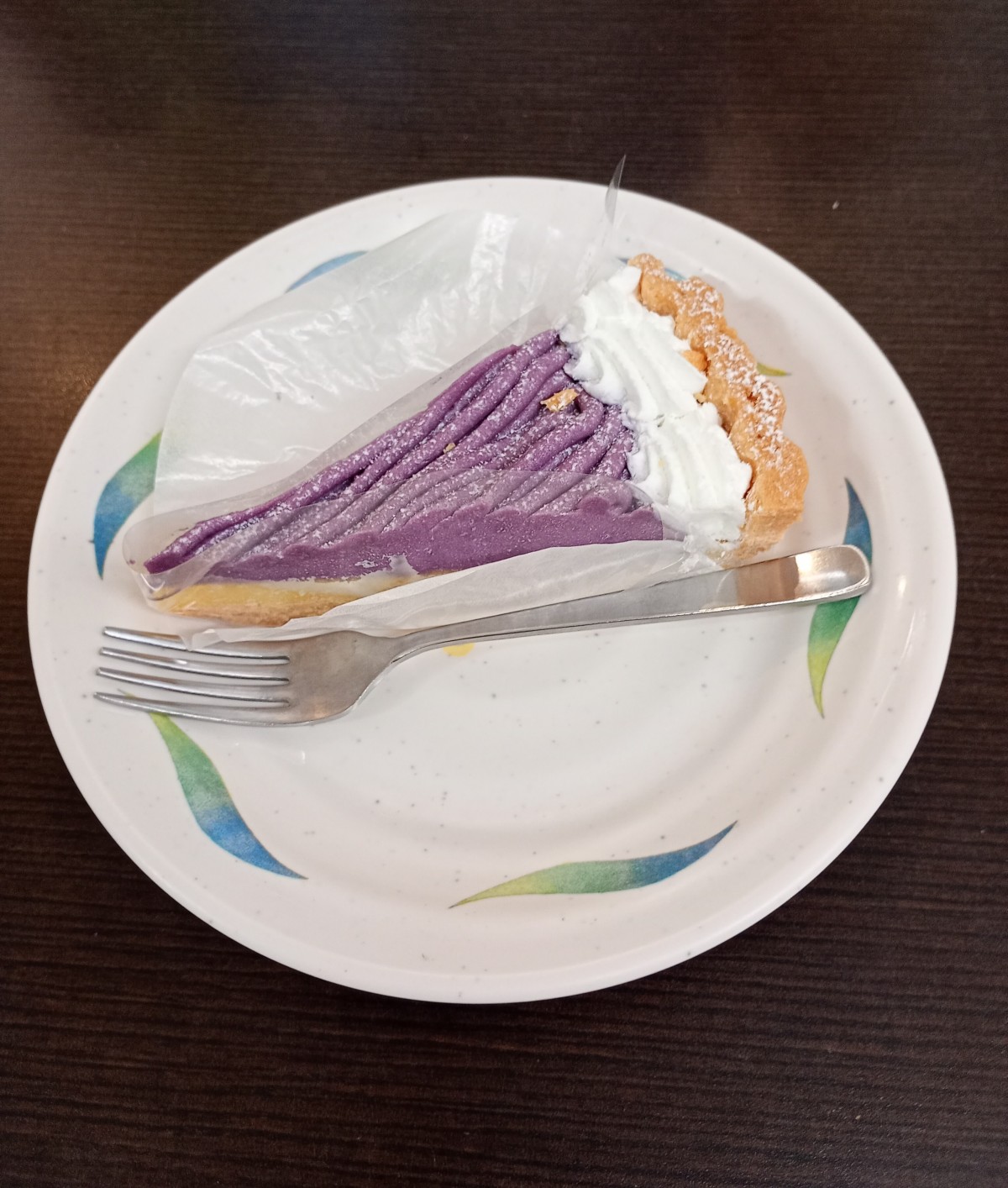 今回のケーキは、紫芋とさつまいものタルトでした♪
