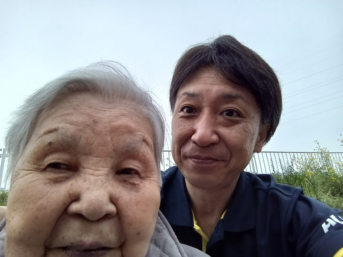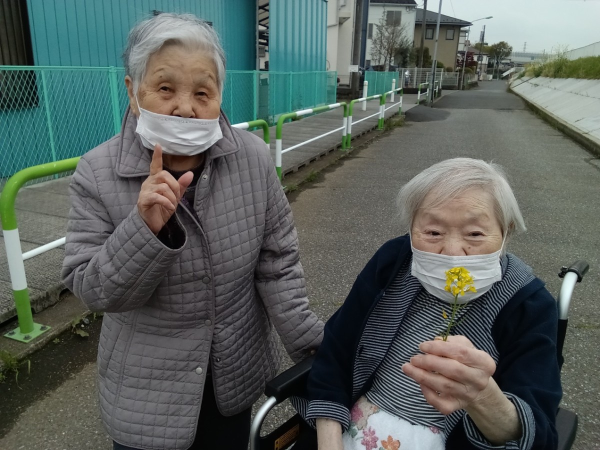 今日は天気も良く、ご入居者様と散歩に出かけました。