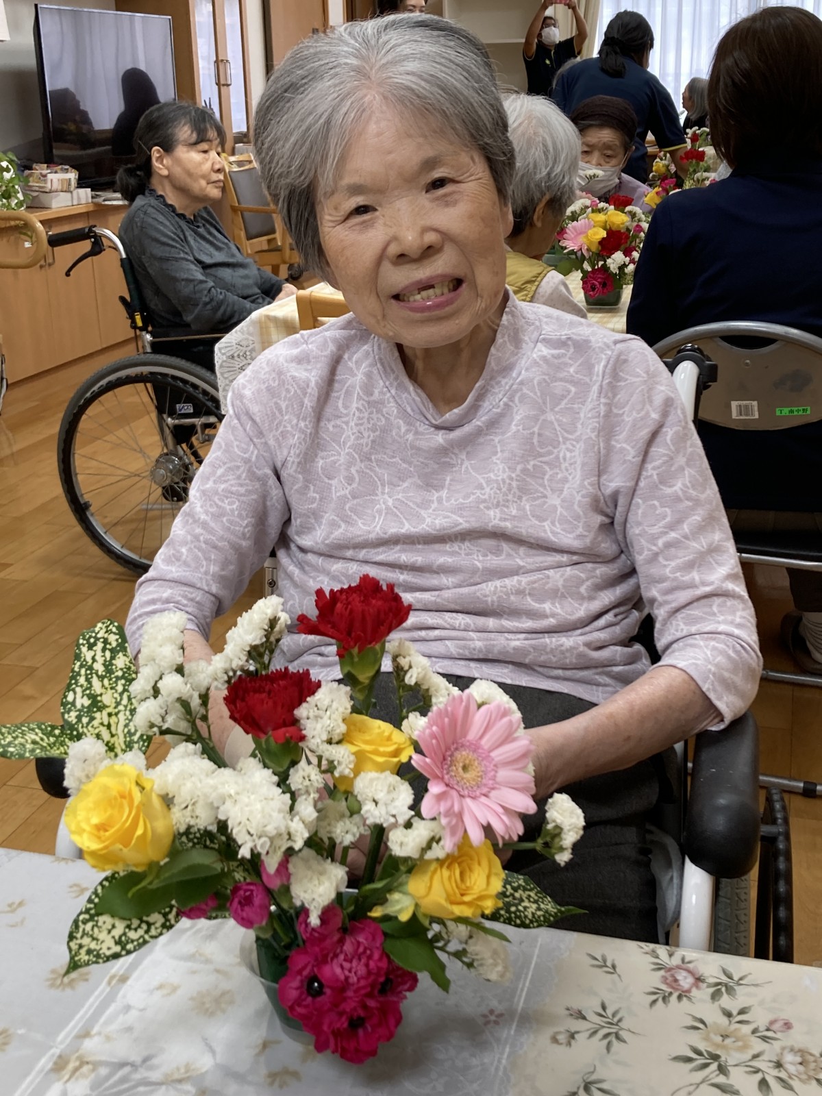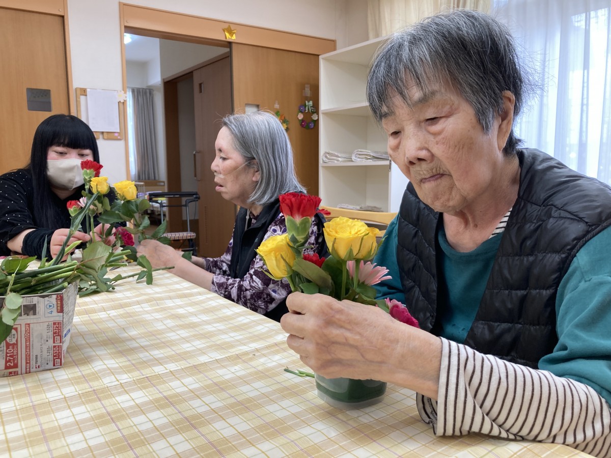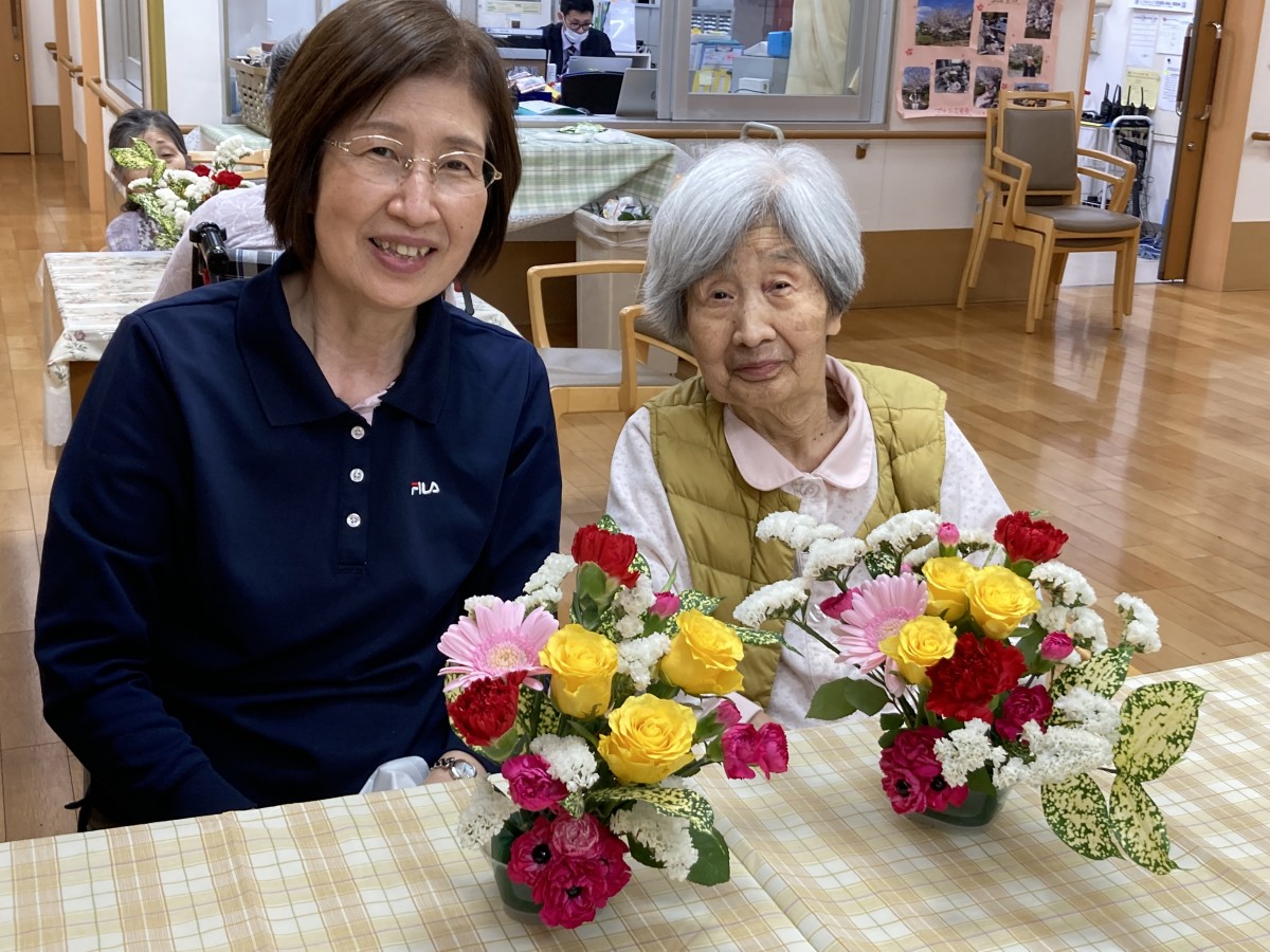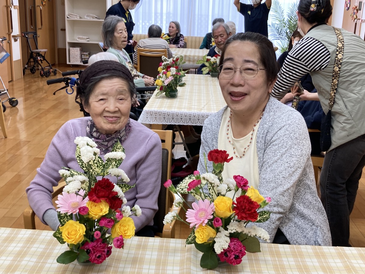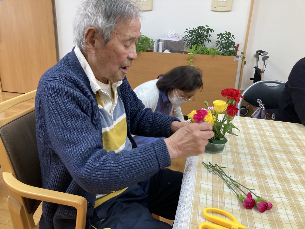 昨日は希望者の皆さんとフラワーアレンジメントを行いました(・∀・)イイネ!!