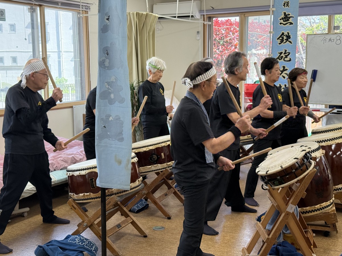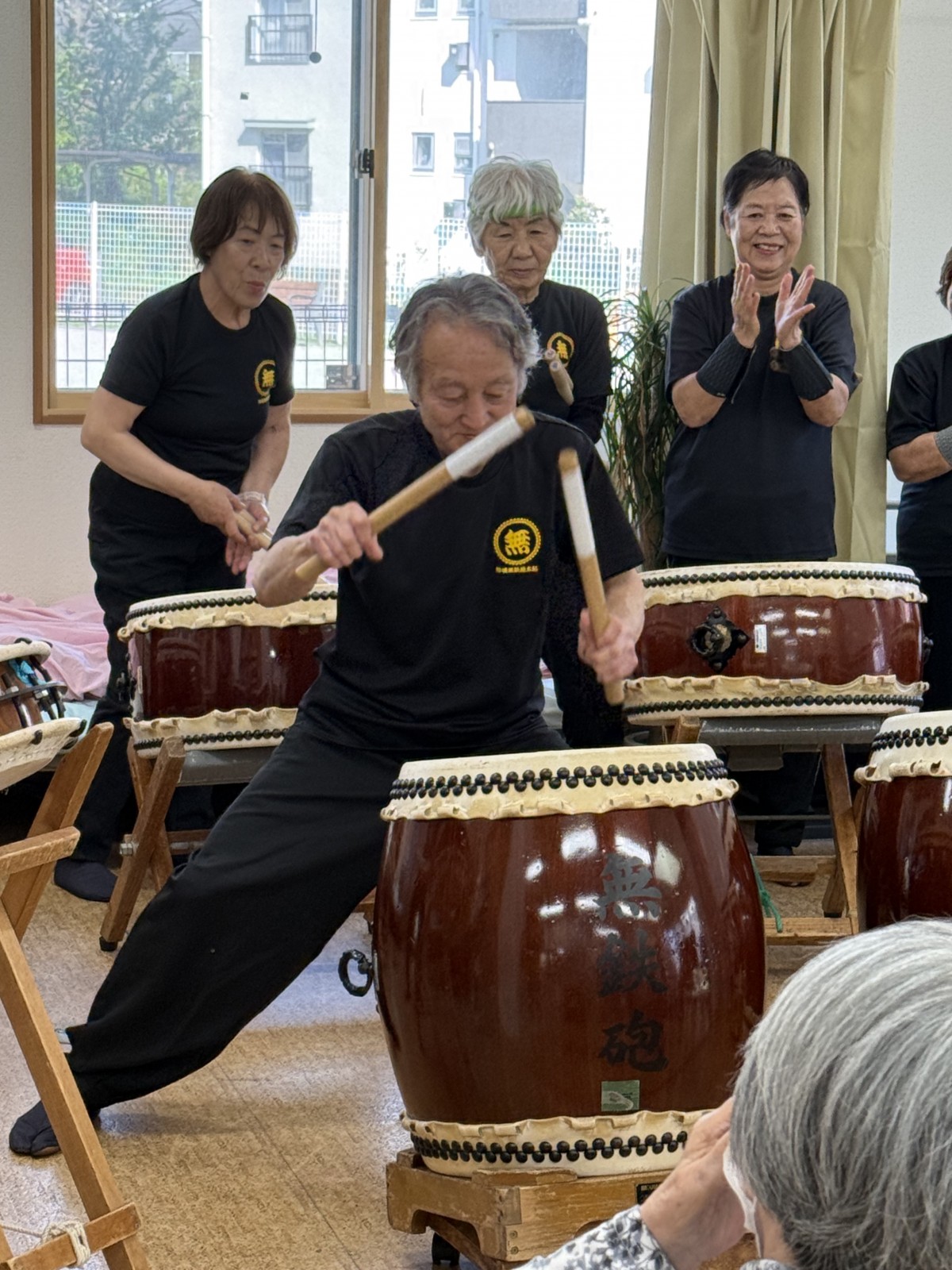 先生の指導に合わせてドンドコドン!と楽しそうに叩かれている皆さんを観て