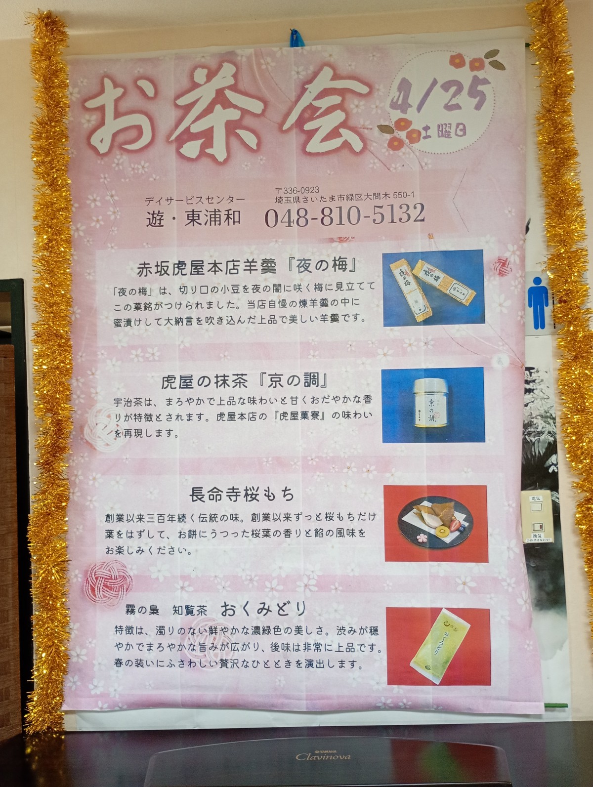 今回は、先日、1階デイサービスにて行なった「お茶会」の様子をお伝えします。