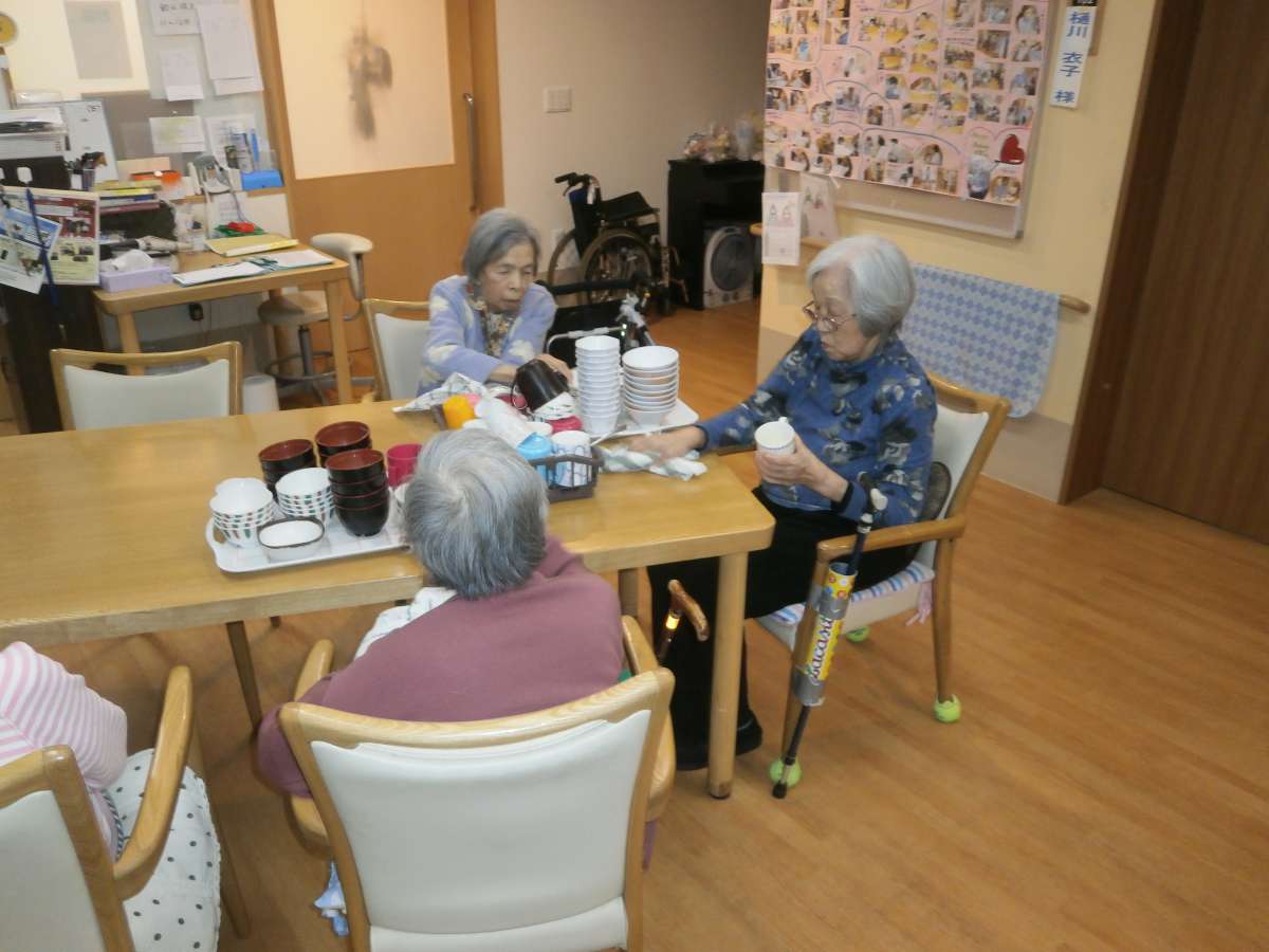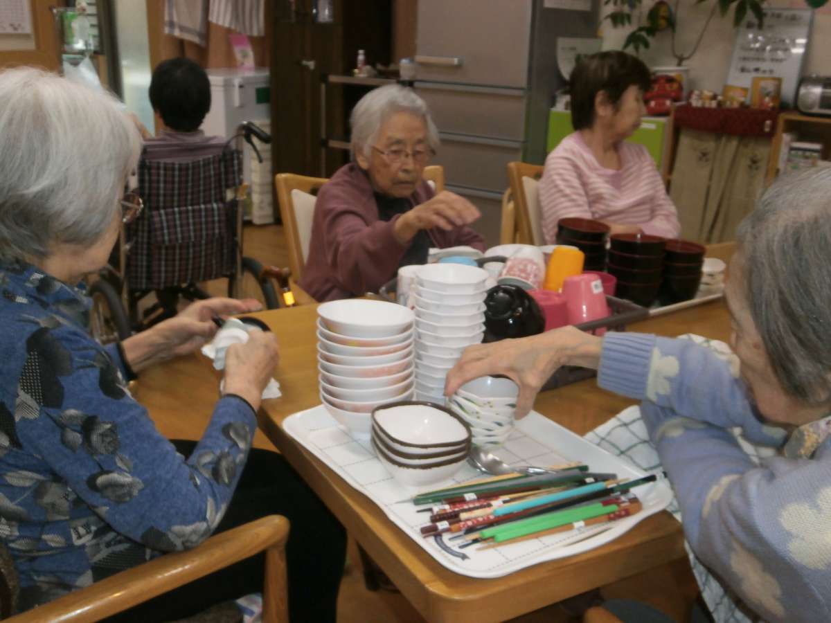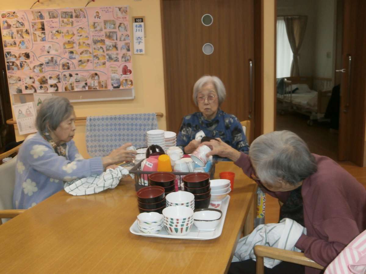 仲良く食器の拭き上げです!
