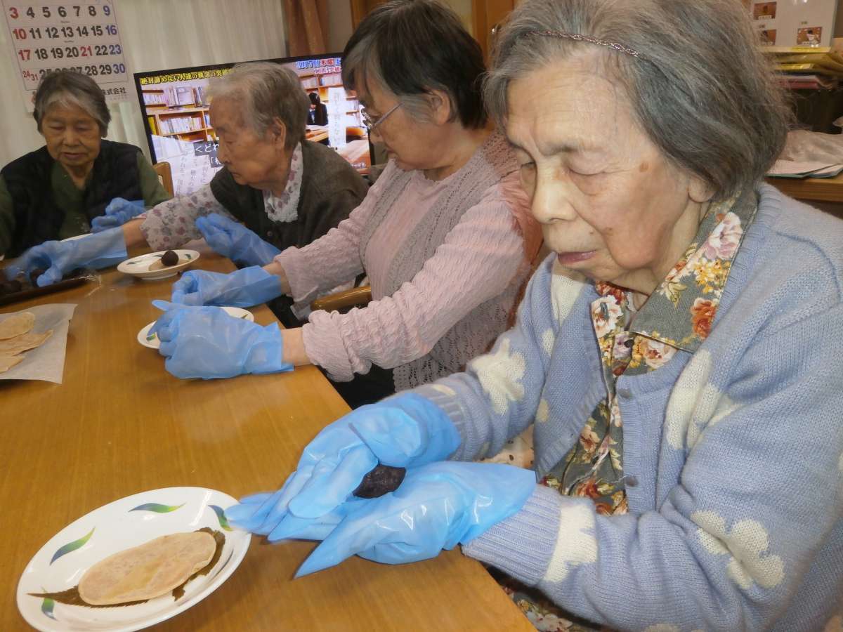 あんこを丸めて~、乗せて2つにたたんで出来上がり!