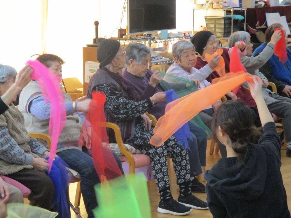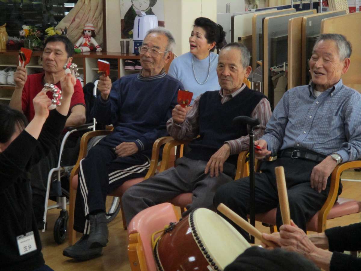 こんにちは。デイサービスセンター遊・川越南大塚です。3月最初のイベントは音楽学校の生徒さんによる“音楽療法”でした。毎回様々な楽器や道具を使い、楽しく演奏をしています(^^♪太鼓や鈴、カスタネットなどなど・・・☺ご利用者様全員で素敵なハーモニーを奏でました☆今月も楽しいイベントをたくさんご用意しています‼皆さまも是非一度ご参加してください(*^_^*)