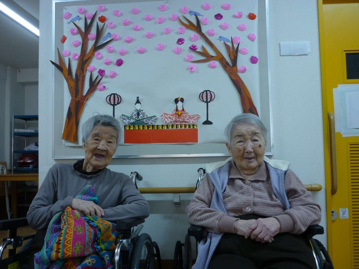 グループホーム戸田では、手作りのひな人形の前で皆様パチリ!!!