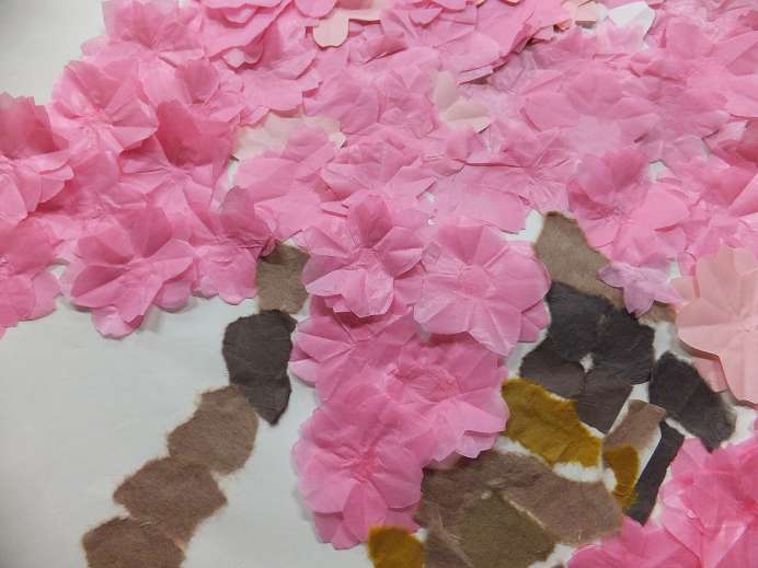 春が近づいてきたことから入居者様たちと、春にあった張り絵を制作しています!