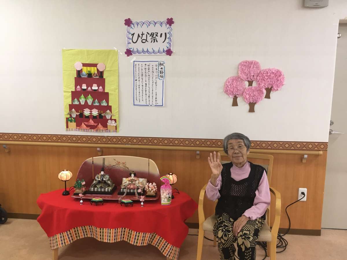 施設で飾っているお雛様とご利用者様で写真を撮りました☆
