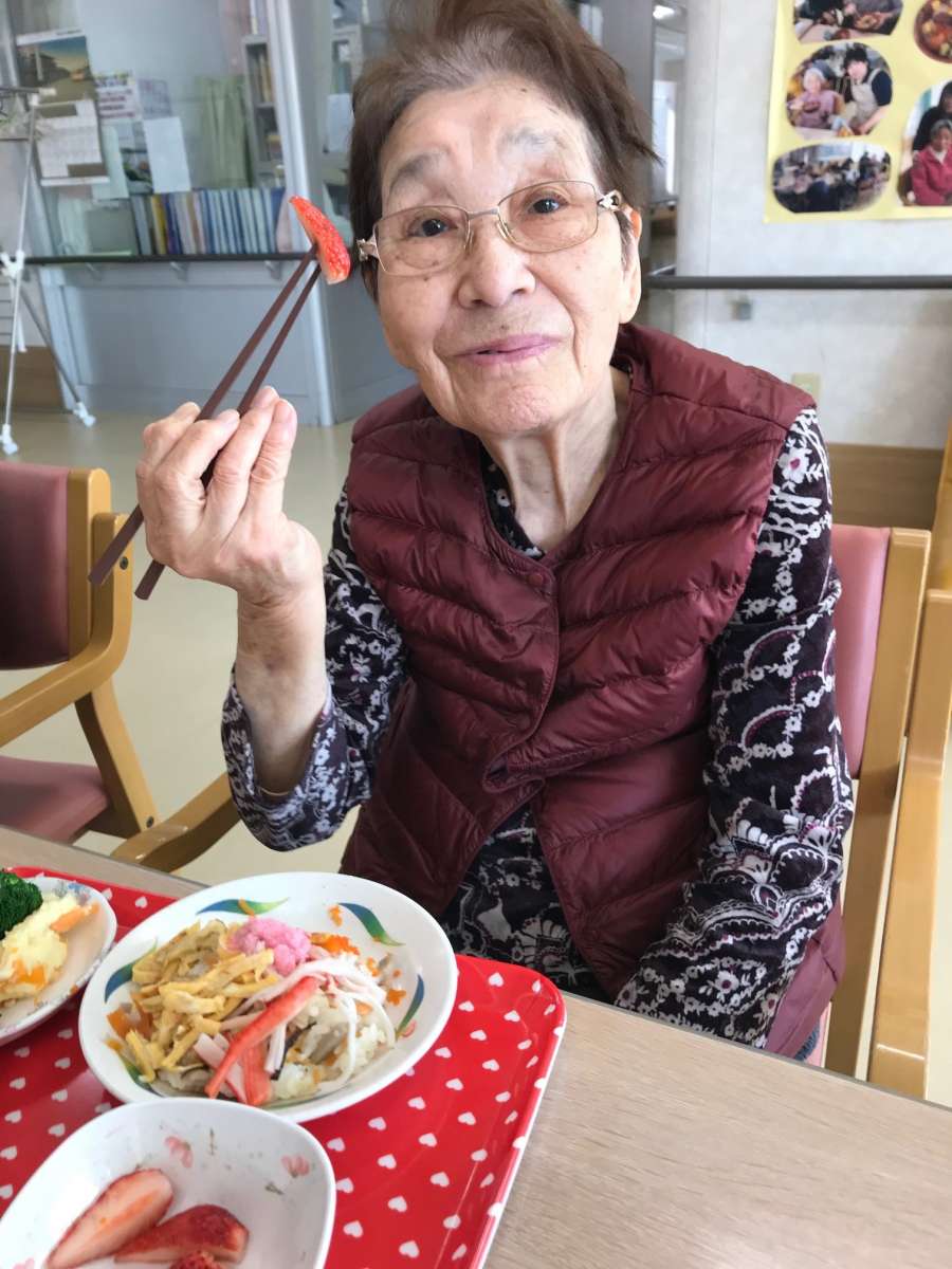 メニューは、ちらし寿司・ポテトサラダ・お吸い物・いちごでした(^^)