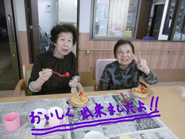 3月が誕生月のご入居様が2名いたので、ホットケーキを焼いてみた。