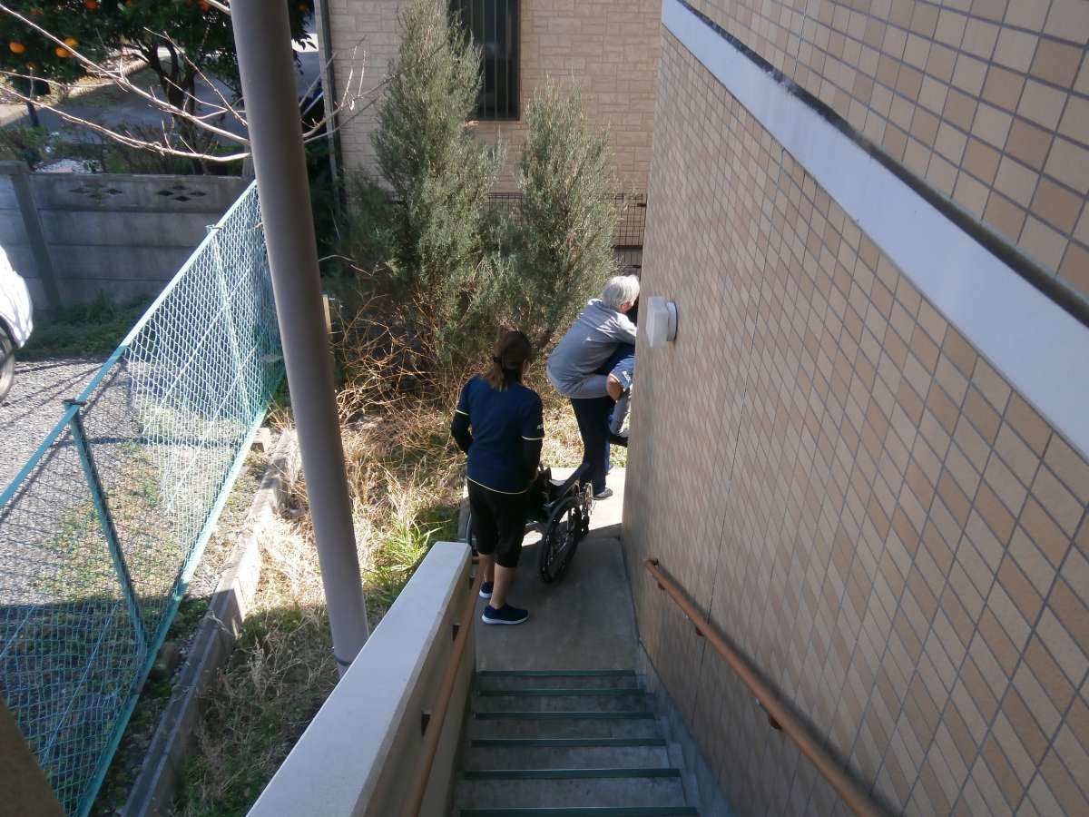 非常階段からの避難は、車椅子の方は職員がおんぶする形で避難を行いました。