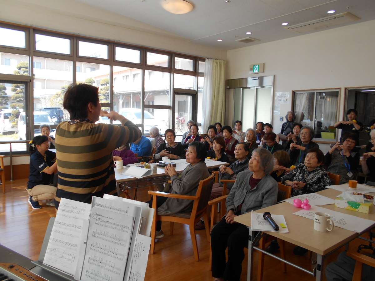 を合唱し、大好きな百歳体操や指の