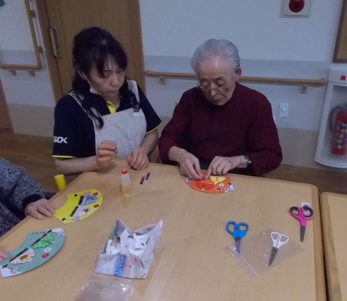 まずは、ご利用者様とスタッフとでひな祭りの飾り付けを用意しました。