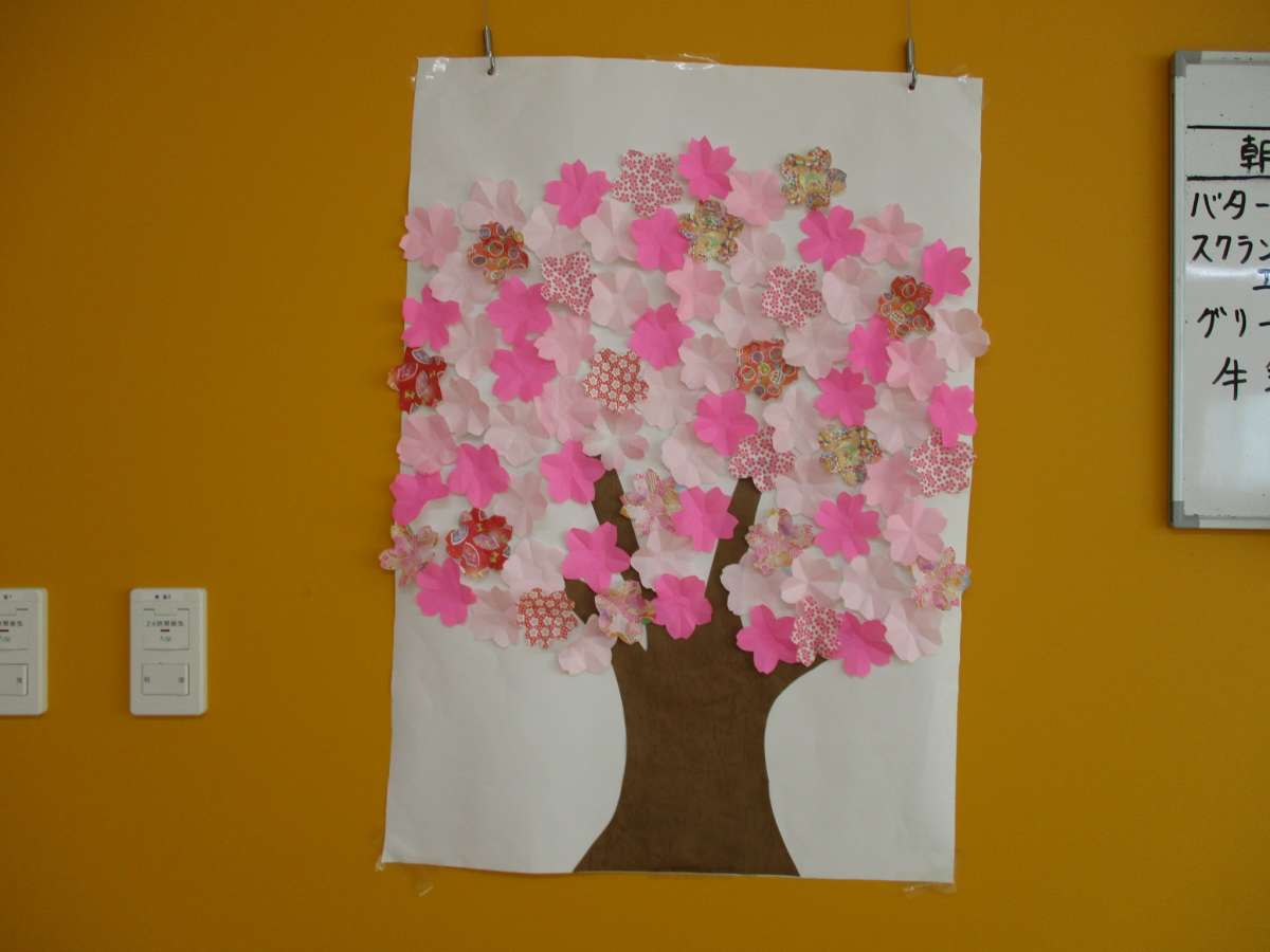 入居者の皆様の手作りの桜で、こちらはもう満開です!!