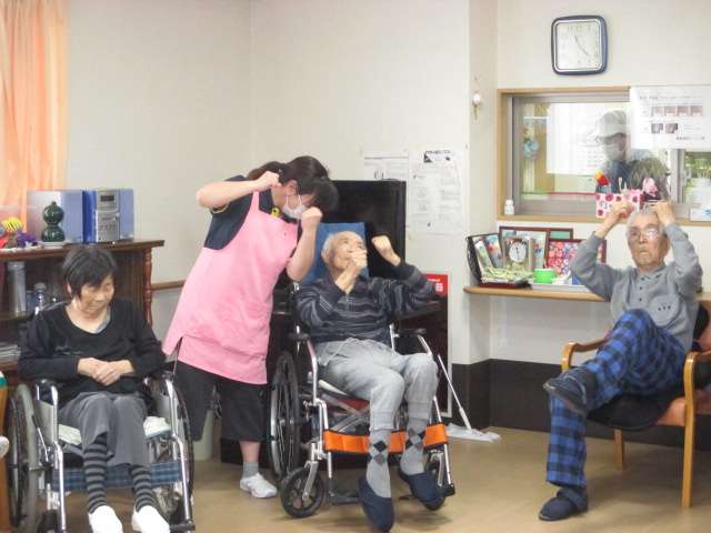 当然、ご利用者様、も体を動かしながら声を出すことに