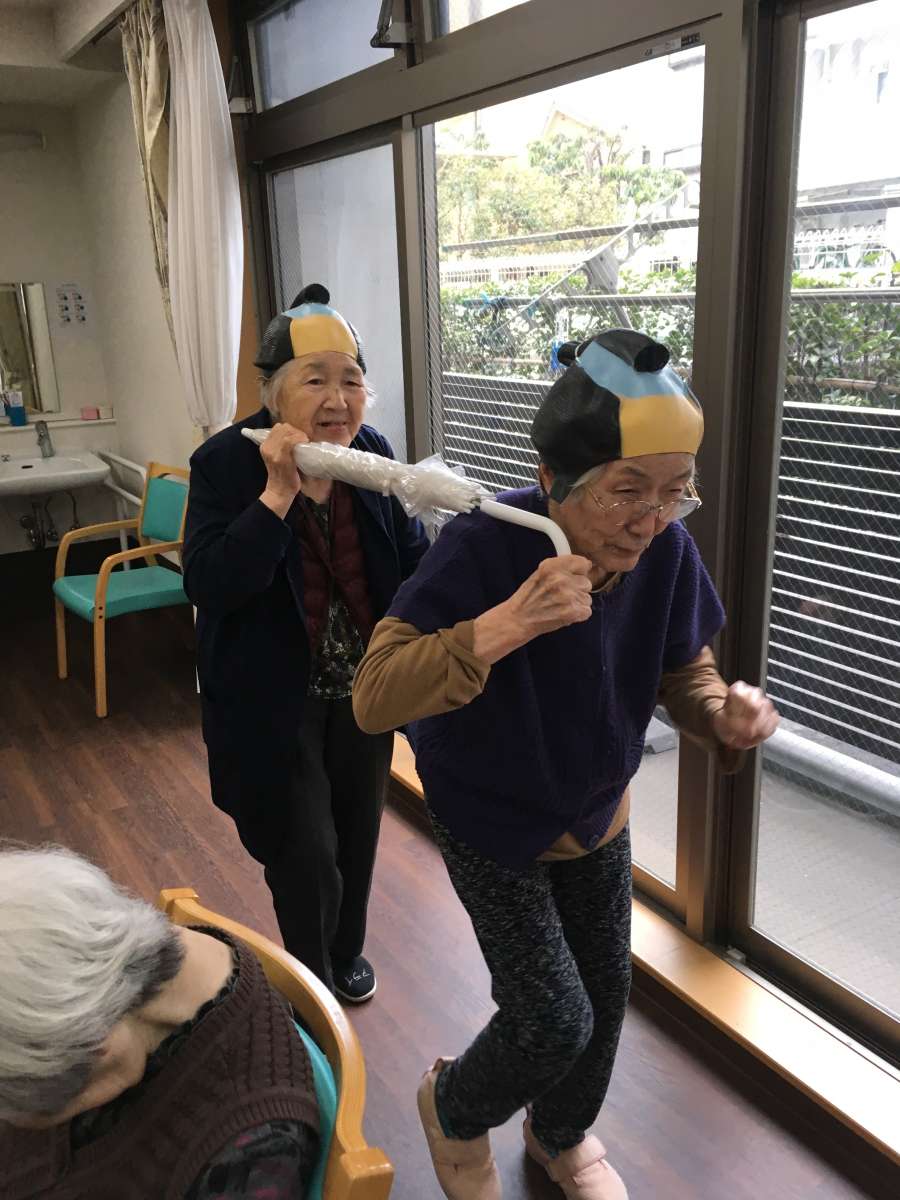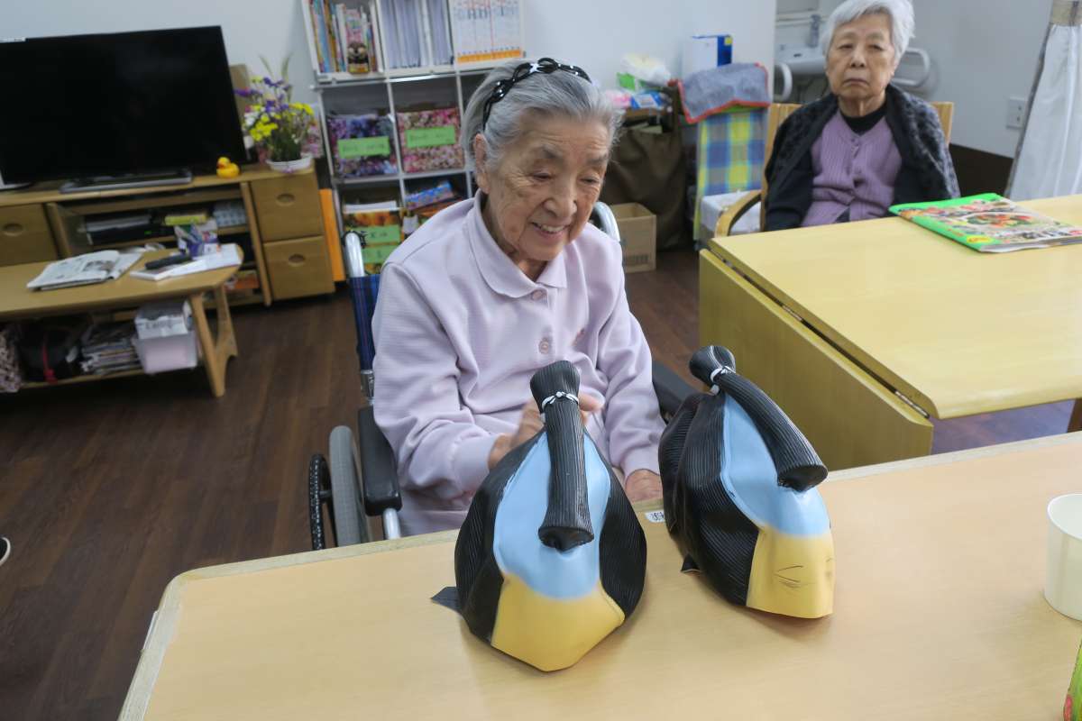 100歳のご利用者様のお祝いで、スタッフが三三七拍子を踊ることに。