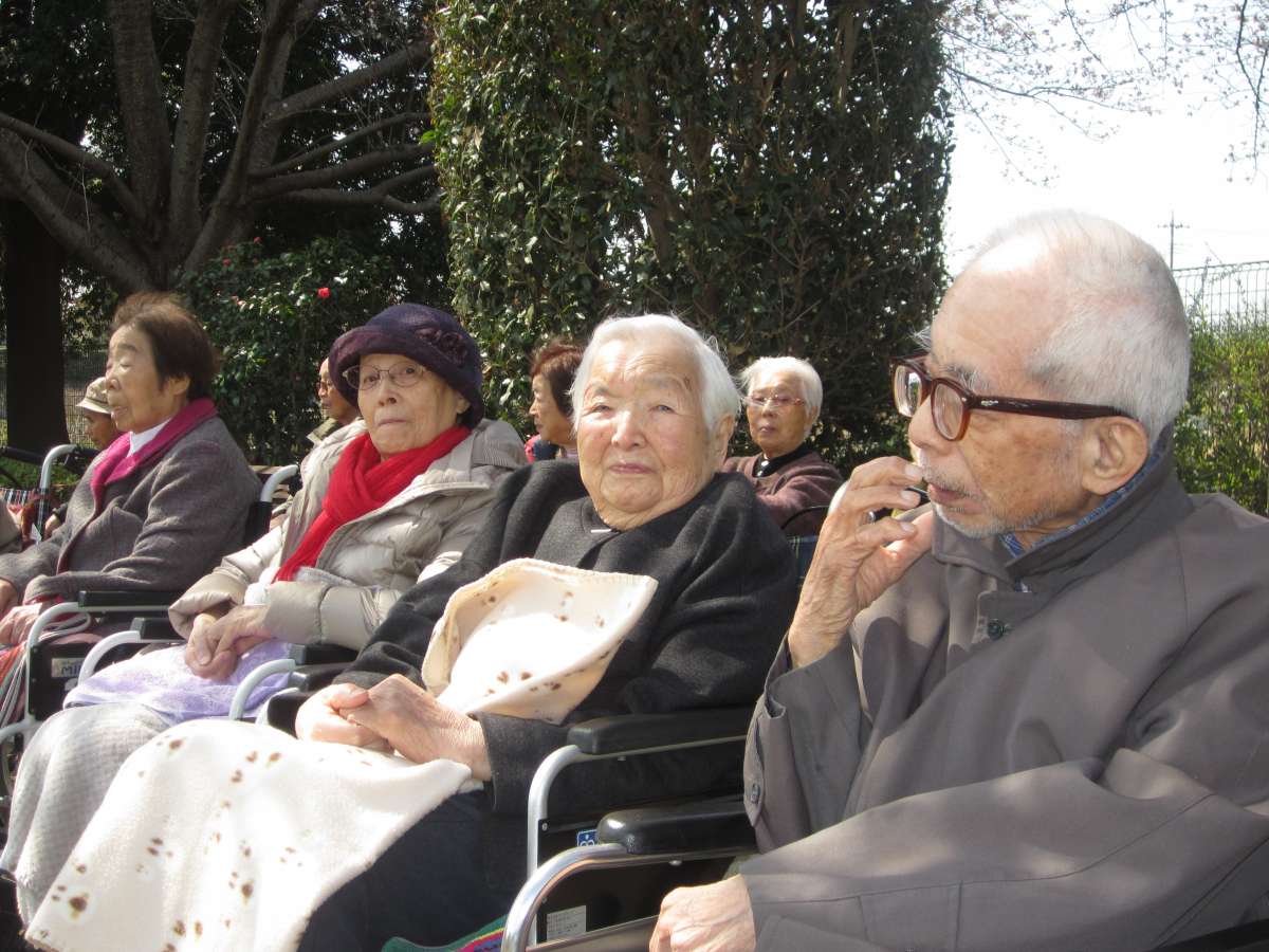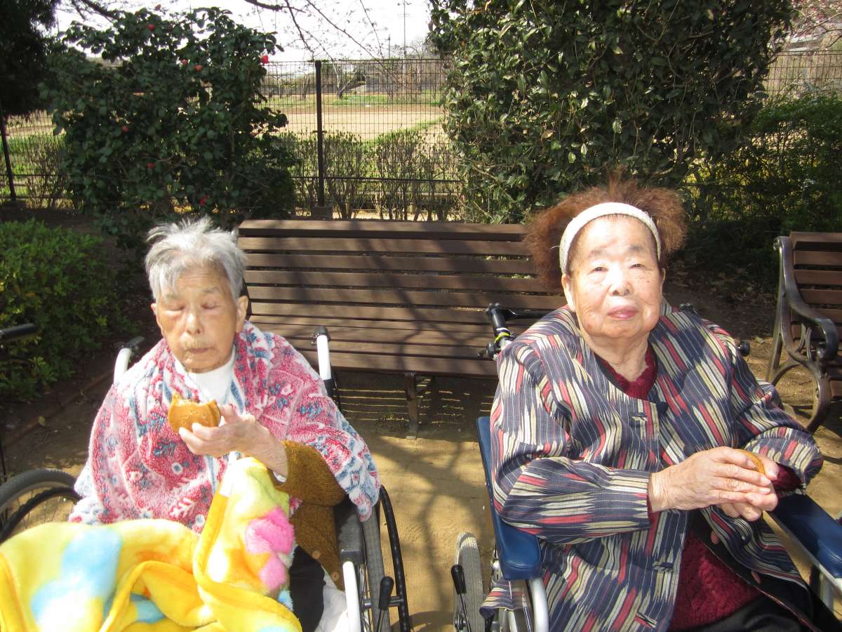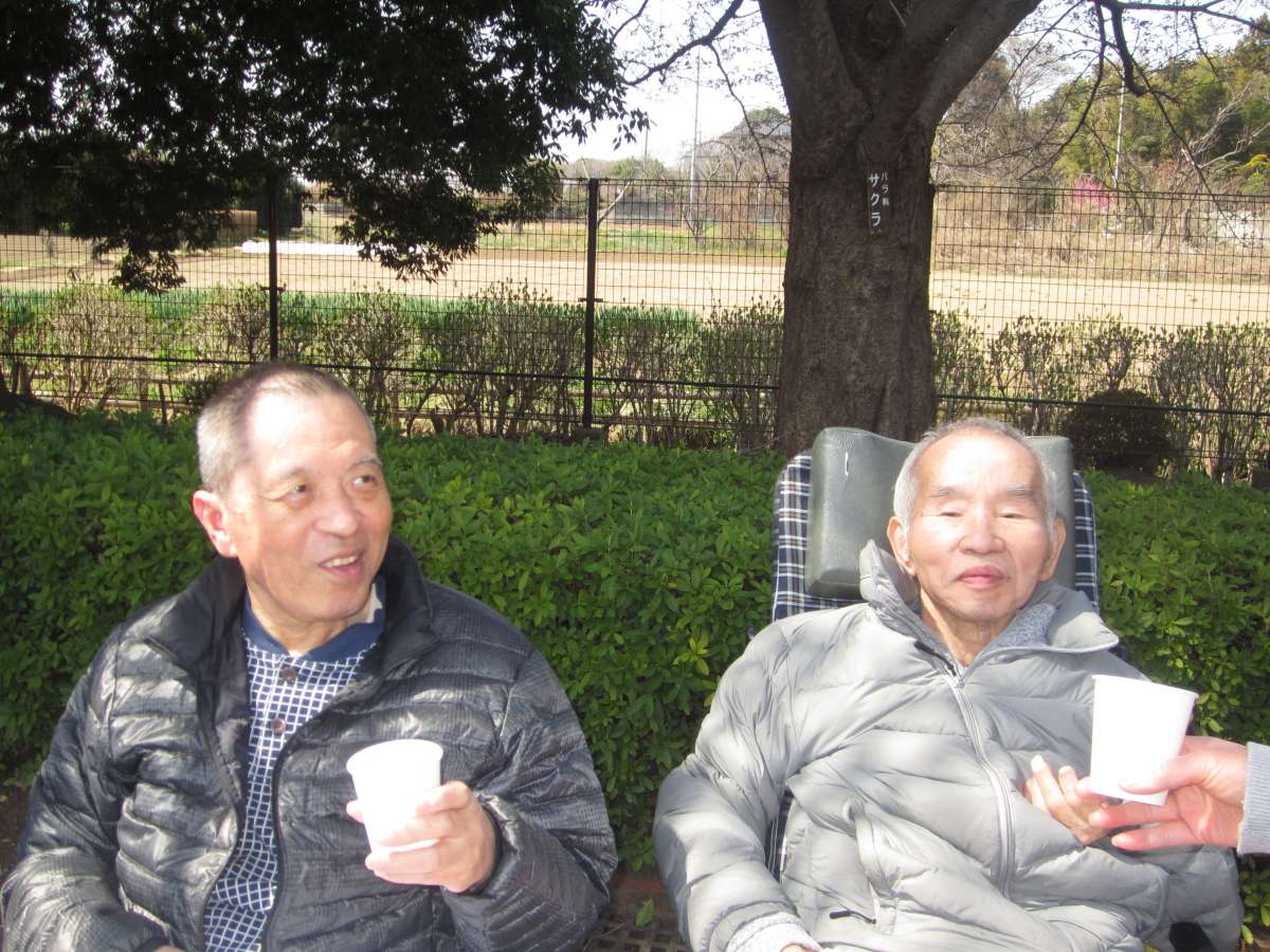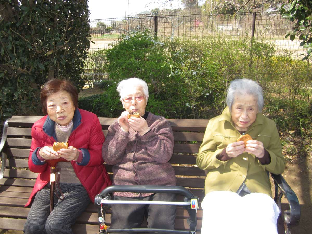 またまた介護付き有料老人ホーム『みんなの家・三橋6丁目』です。行ってきました\(^o^)/『お花見❀』3月27日に1,2階のみなさまと『大宮花の丘公園』へ!さくらは3分咲き位でしたが^_^; おやつとお茶を召し上がりみなさんにこにこ(*^。^*) 花より団子 ですね❀