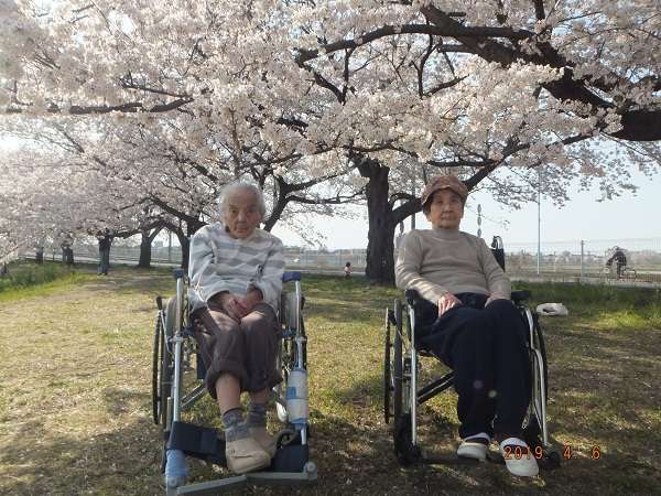 職員と一緒に散歩に出かけました!!近隣には桜がとてもきれいな河川敷や公園があります。