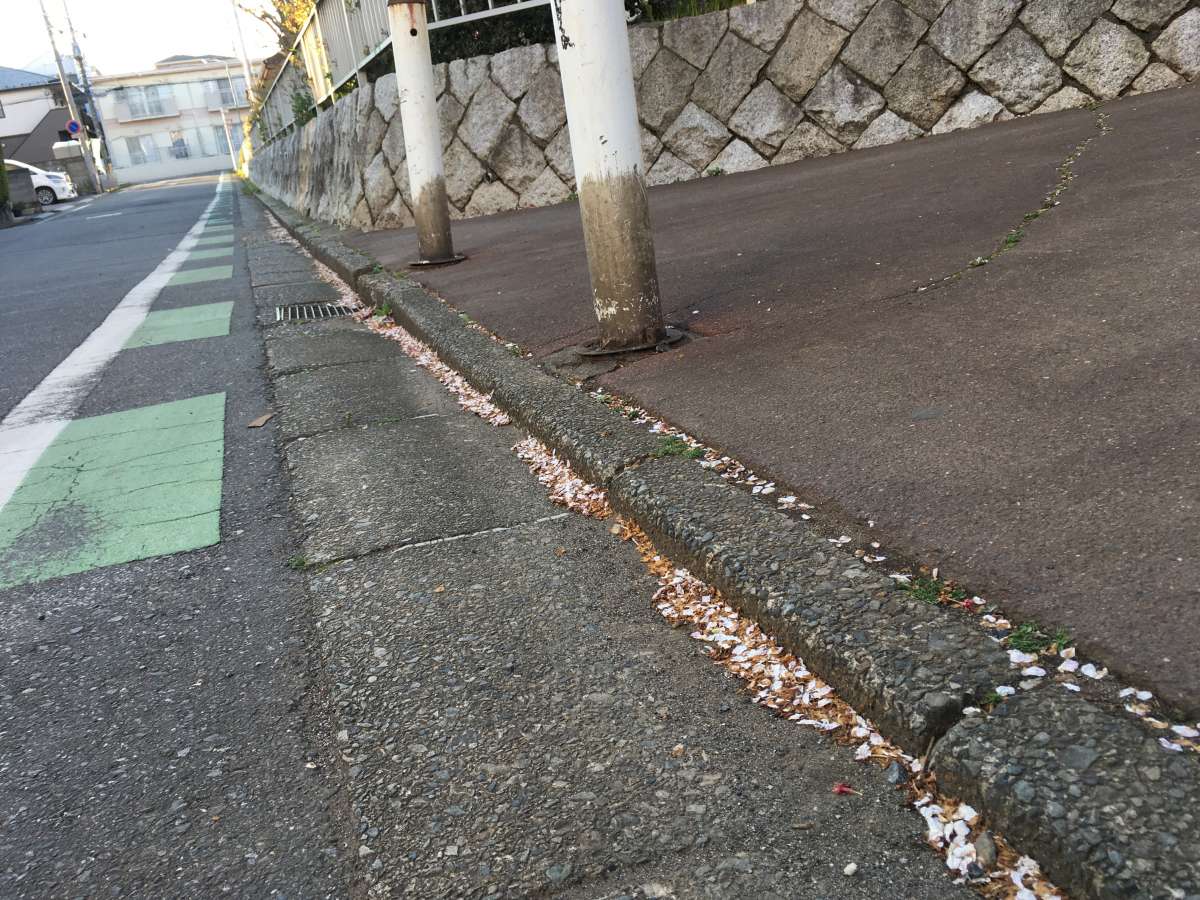 側溝にある花弁を見ると少しセンチメンタルになります。