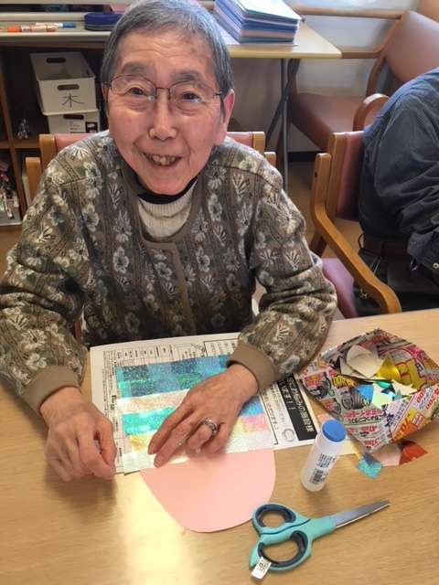 女性の利用者様は、キラキラが大好きなので楽しそうにのり付け作業を行ってくれました!!