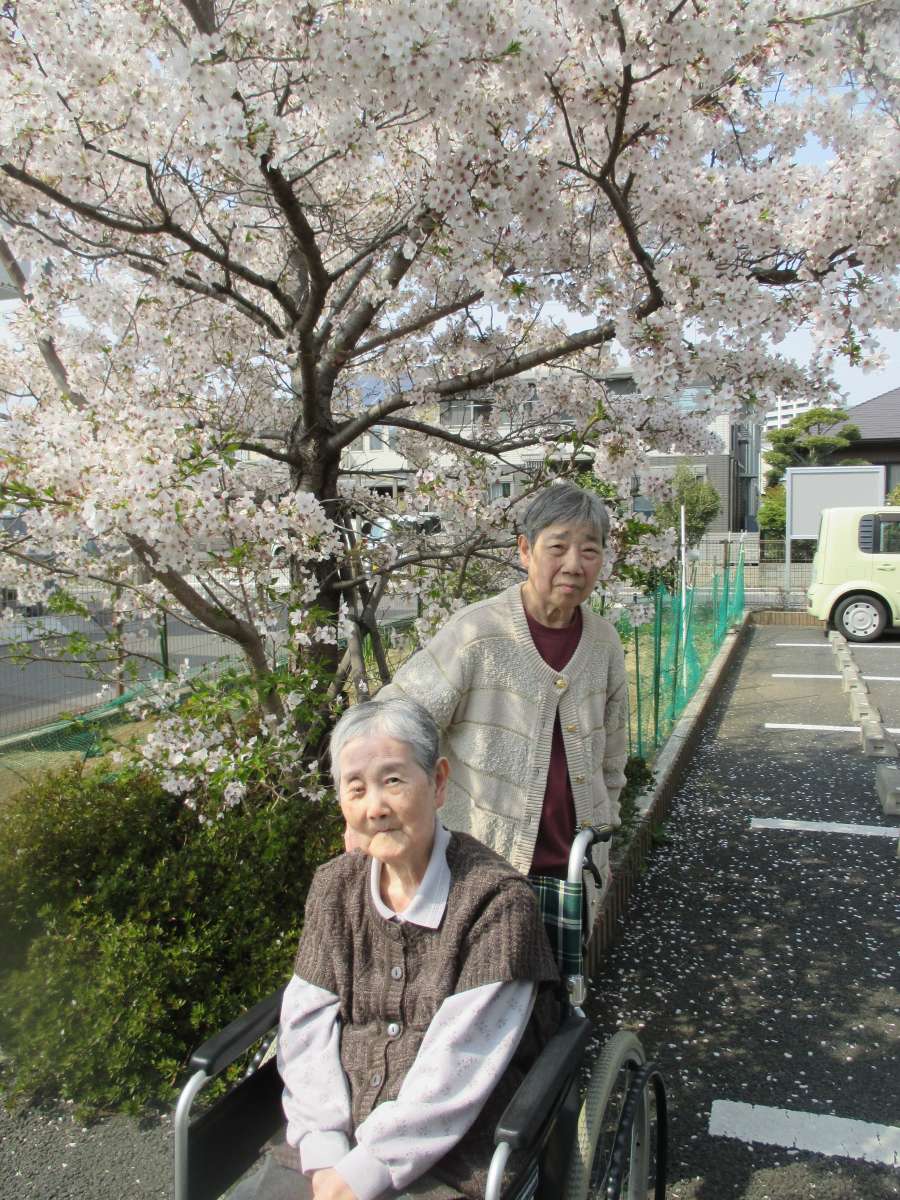 ホームの玄関前の桜が今年も綺麗に咲いていたので
