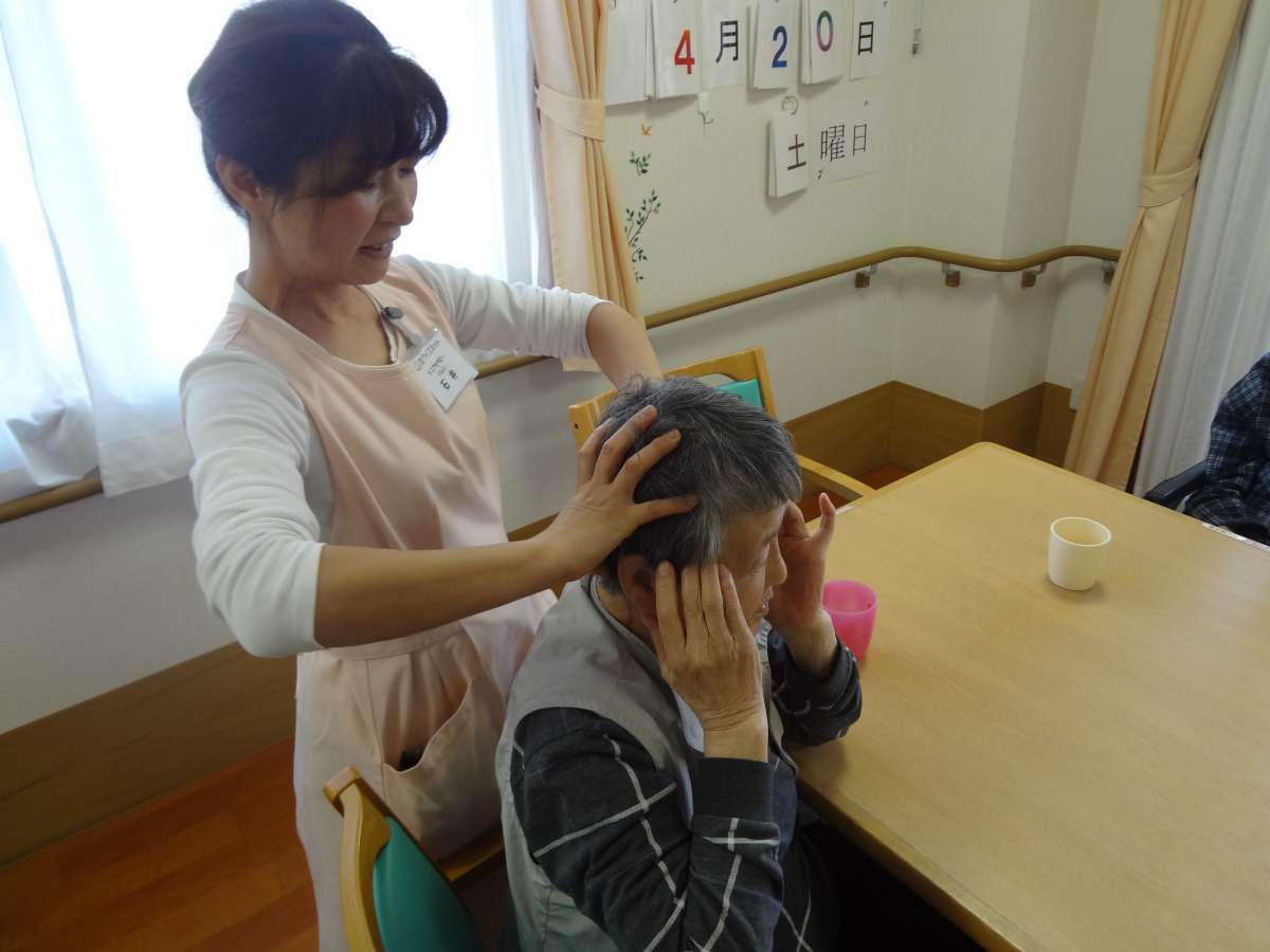 されていました。石井様よりマッサージの仕方を皆さんが教わりました。利用者様もスタッフも体験されて
