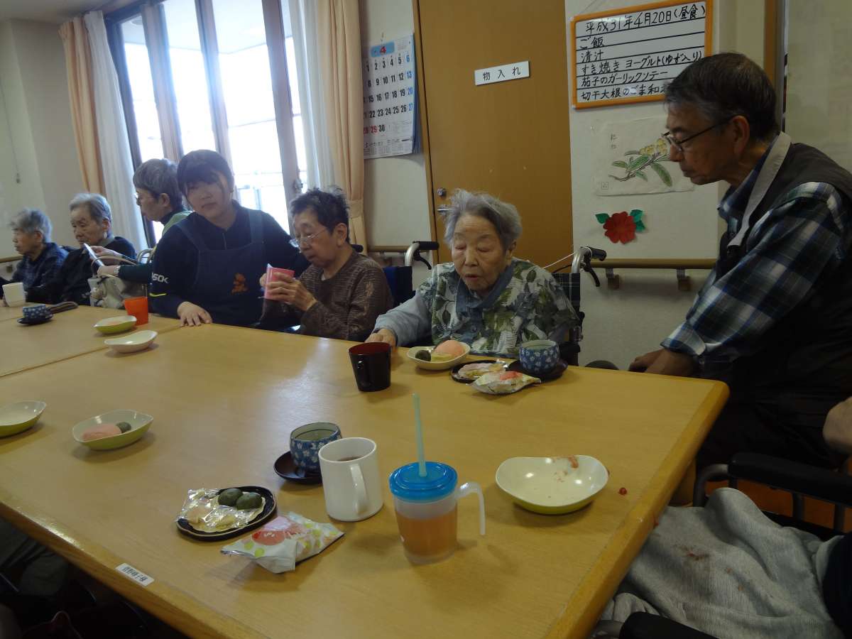 お肌ツヤツヤ綺麗になりましたよ(笑) 茶話会では、スタッフも普段は利用者様とゆっくりと話をしたり