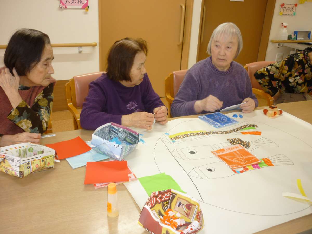 4月20日、21日にかけて皆様でこいのぼりの、製作に取り掛かりました(*^_^*)