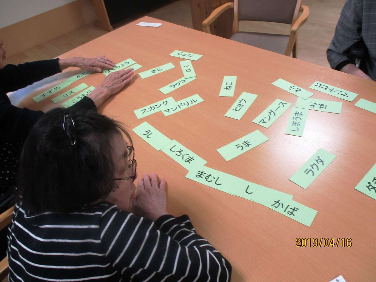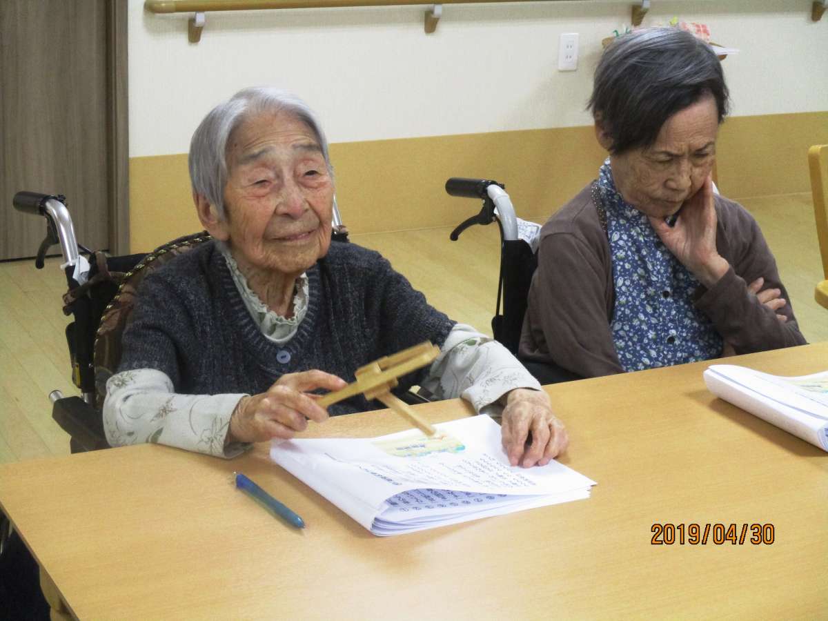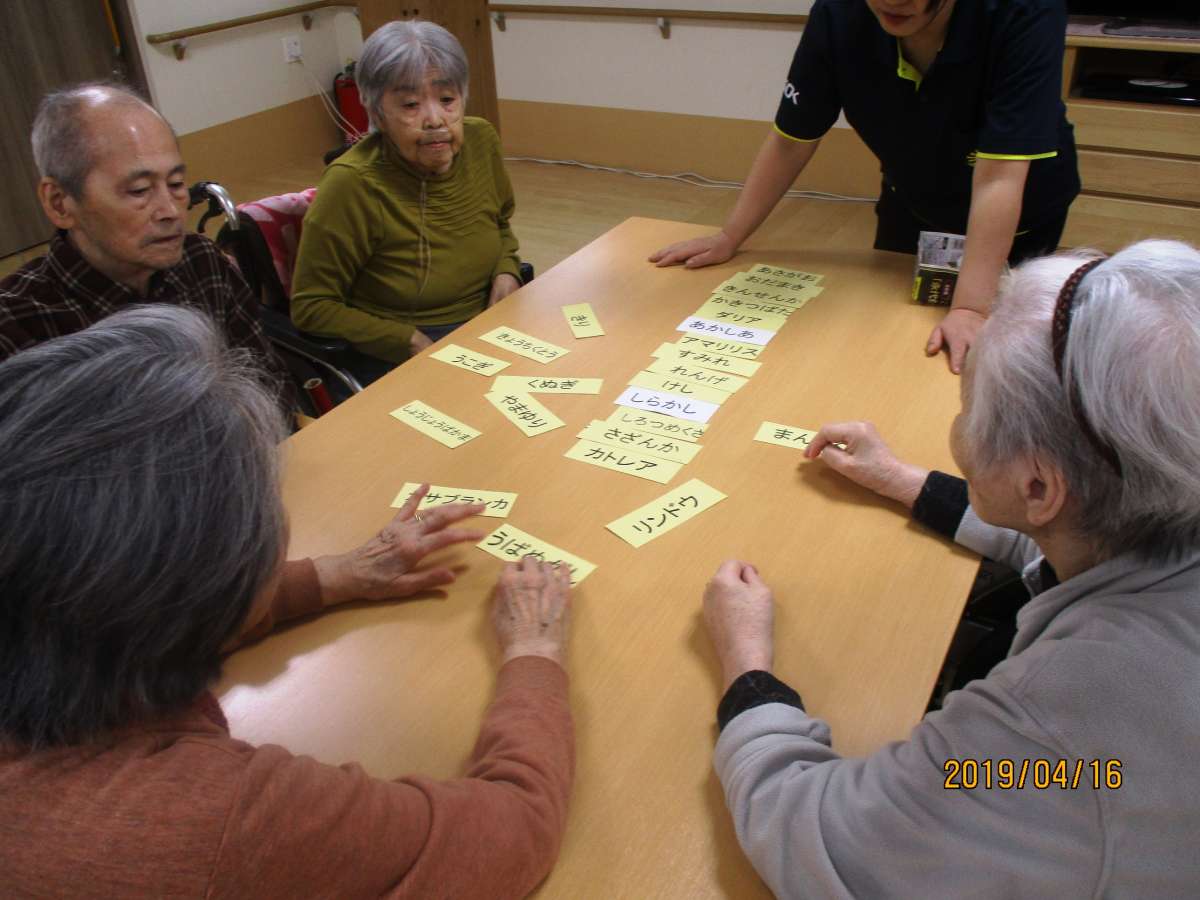 4月は16日にゲームの会、30日にひろし歌の会を催しました。 今回のゲームは「カードしりとり」。全てのカードをしりとりで繋げます。 思った以上に頭を使います。 「ひろし歌の会」では初夏の歌謡曲、唱歌を楽器を鳴らしながら皆で合唱。 G・W始めのためかご家族様のご面会、ご参加も多く、ちょっとした合唱団の様相でした。 会の後には、オーナー様ご自慢の淹れたてコーヒーと紅茶をいただきました。