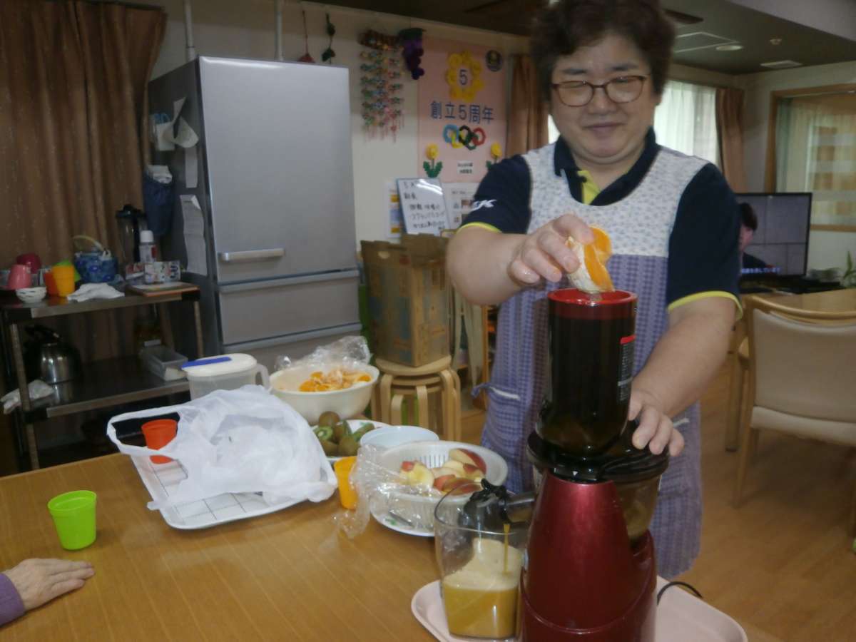 4種類の果物を順にミキサーへ!