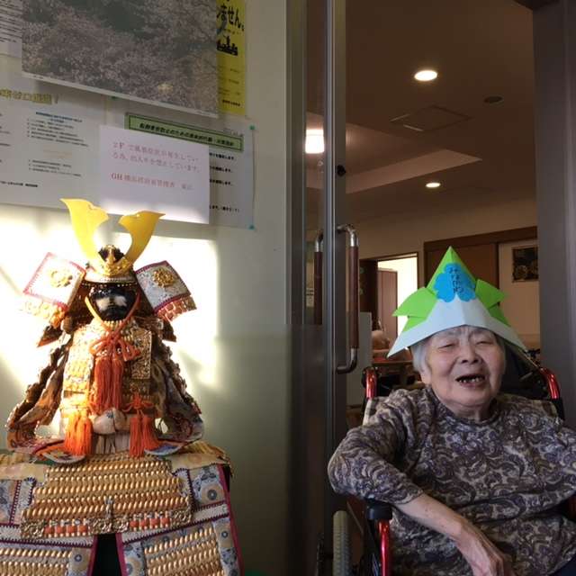 今月は先月に続き、レクで兜と鯉のぼりを作りました。