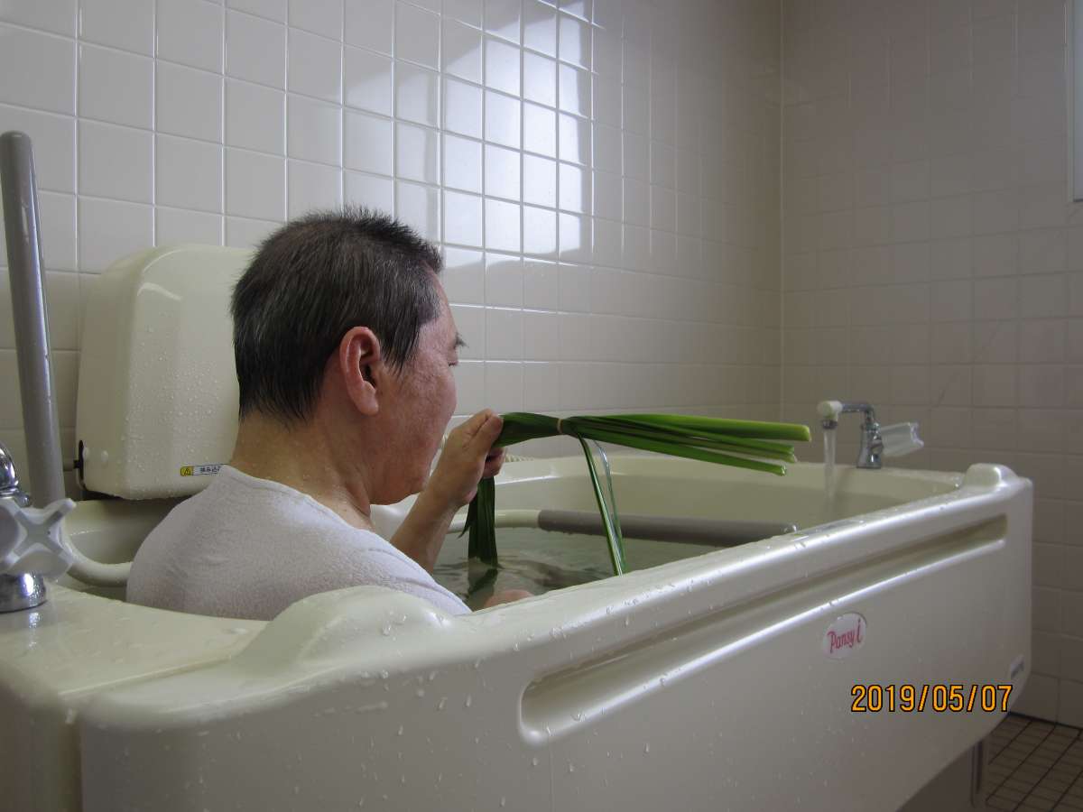 ご利用者様の状態に合わせみなさんに入浴を楽しんでいただいています\(^o^)/ 今回はしょうぶ湯にして季節を感じて頂きました♪