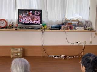 とは言いつつ、さすがに神田までご入居者様を連れていく事が出来ず、ニュースを見ながら雰囲気だけでも…