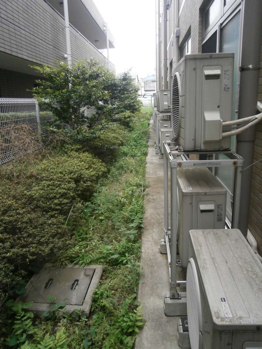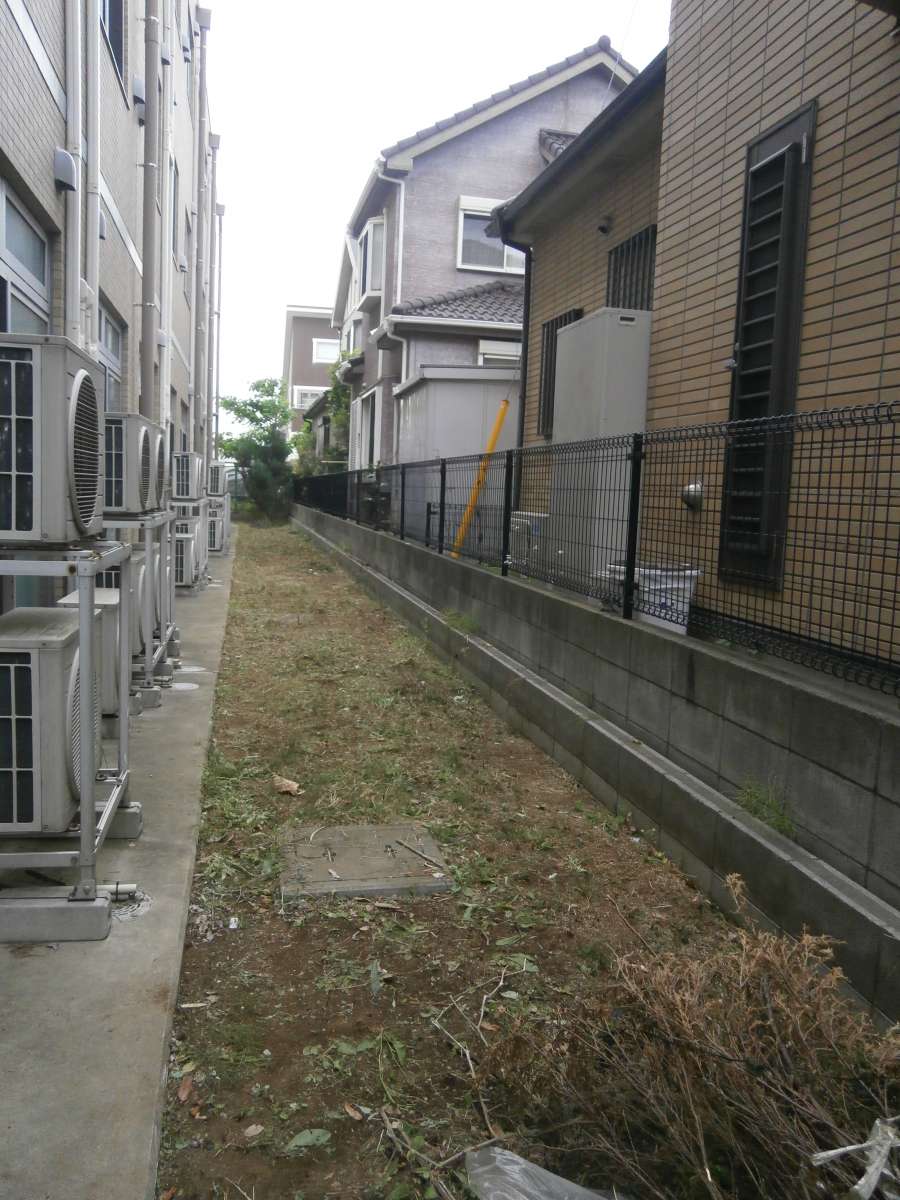 今日は雨予報とのことで、急遽、施設回りの草刈りを行いました。