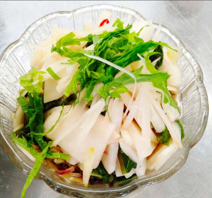 1.カブを薄く切り、熱湯に10秒ほど浸け、取り出し(1分ほど水を切った後、味付けをする)