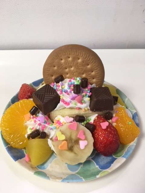 今回はチョコやクリーム、フルーツでデコレーションしたロールケーキで