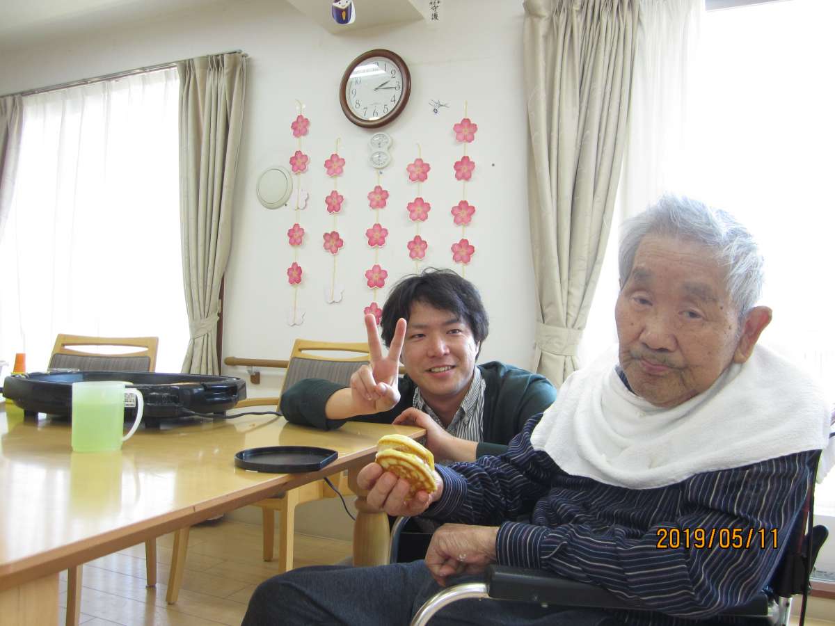こんにちは介護付き有料老人ホーム『みんなの家・三橋6丁目』です。今回はみんな大好き『おやつレク♪』みんなで『どらやき』を作りました\(^o^)/ ホットケーキミックスをまあるく焼いて~あんこと生クリームをサンド!!おいしくないわけがない(#^.^#) みなさんのいい笑顔いただきました~♡