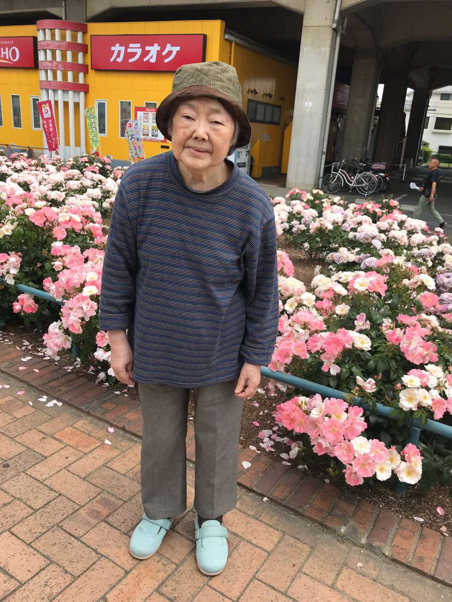 与野本町駅前のバラをご覧になりながら、アイスを召し上がられ「美味しいわ♪」