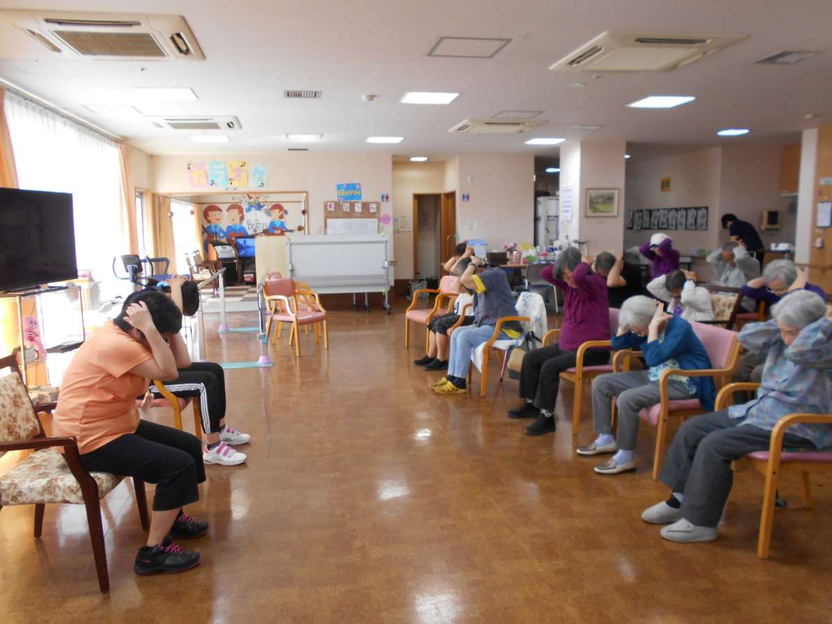 デイのご利用者様と一緒にあんしんヨガを楽しんで